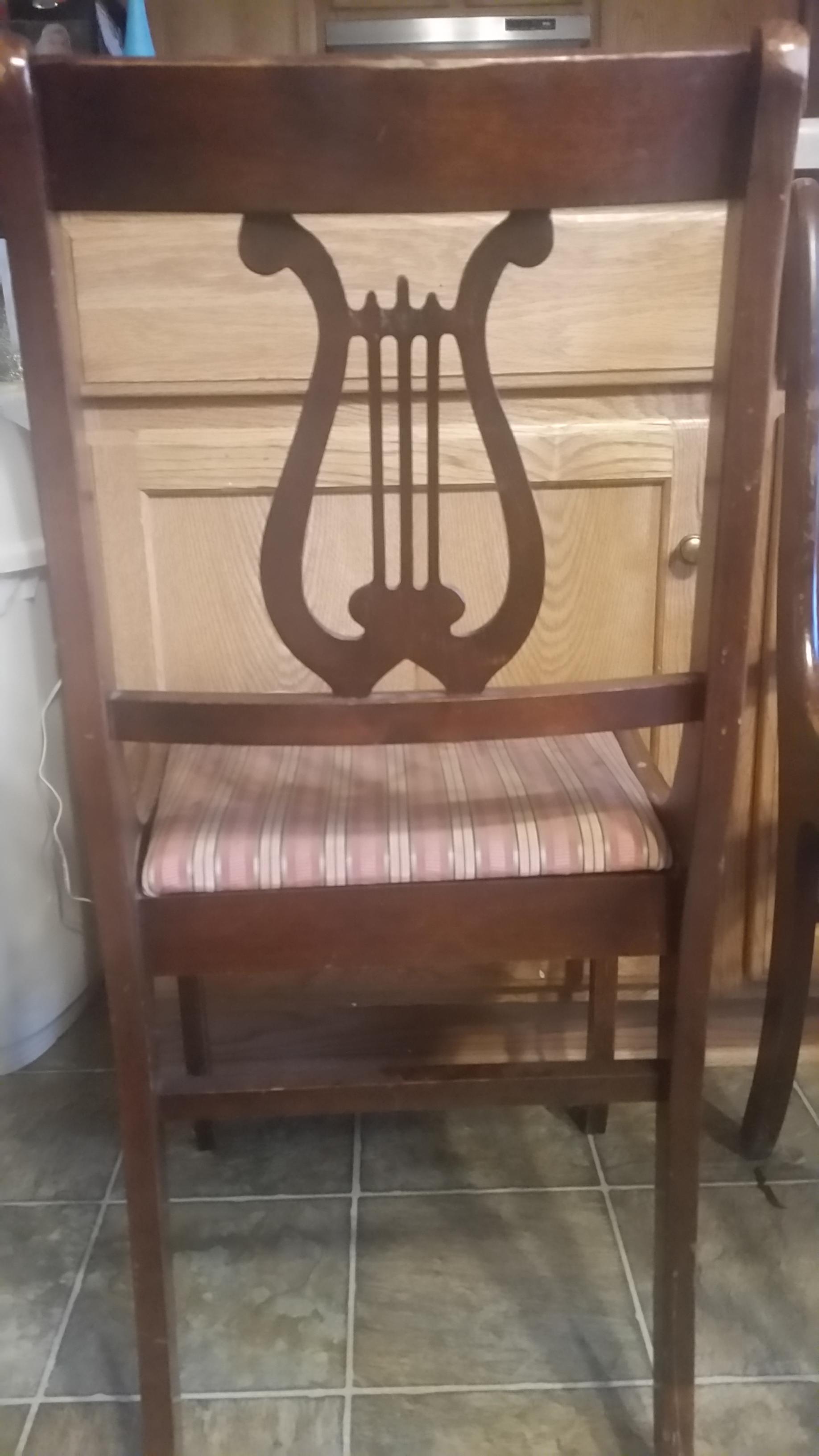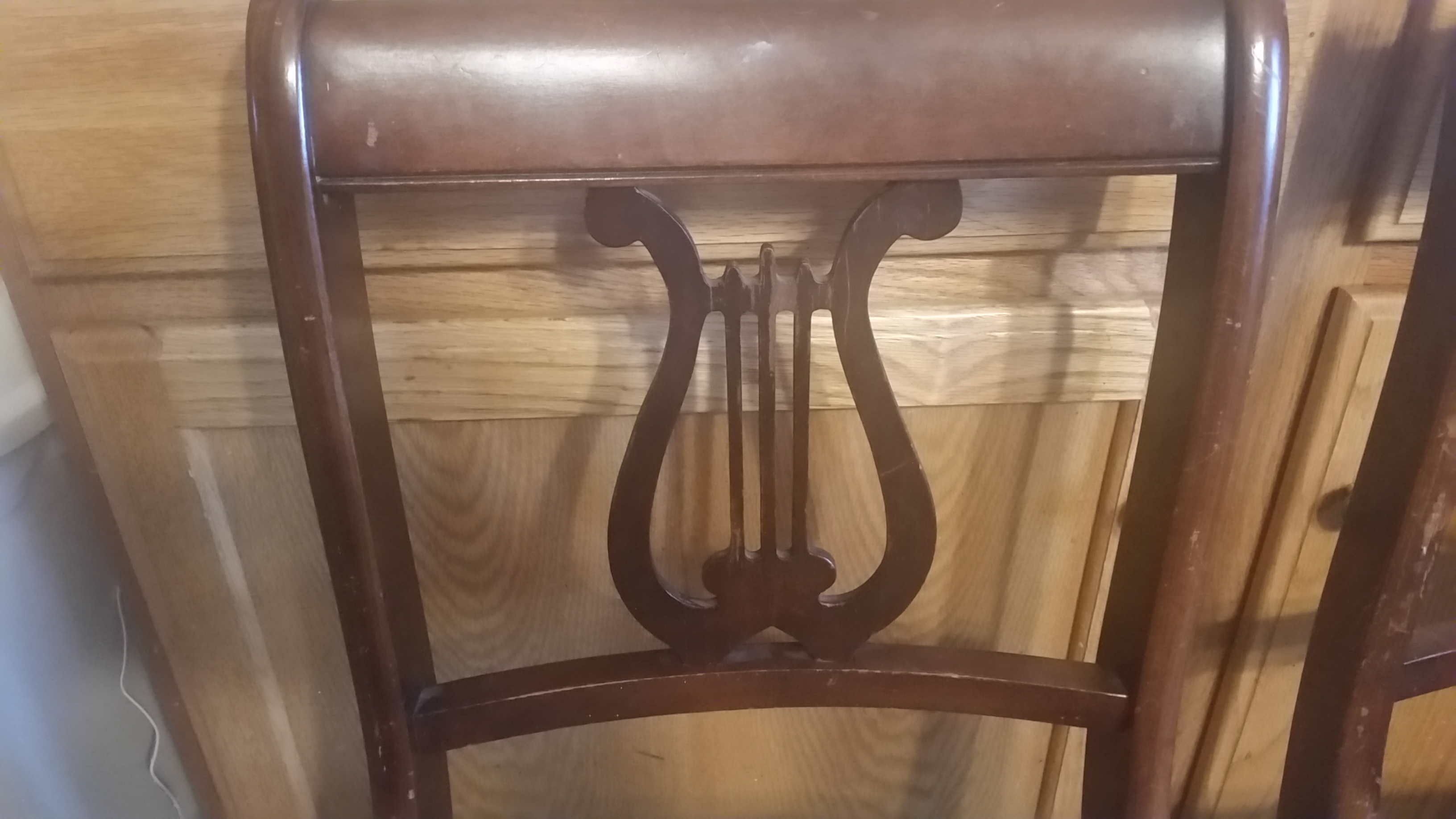 I have 3 Lyre back mahogany chairs (3) to be exact. Wondering if anyone can tell me what year they are from, what they are worth and will their value be affected if I decide to reupholster and/or paint them? Thank you for your time.