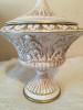 appears to be a hand carved, painted Lyre shaped wood frame with a barometer that says Made in Germany. The front is painted green with the detail that appears to be a gold leaf colored. The back is painted gray (appears to be one coat) and not meant to be displayed. The designs painted gold colored on the front appear to be done freehand. I am curious about this piece.