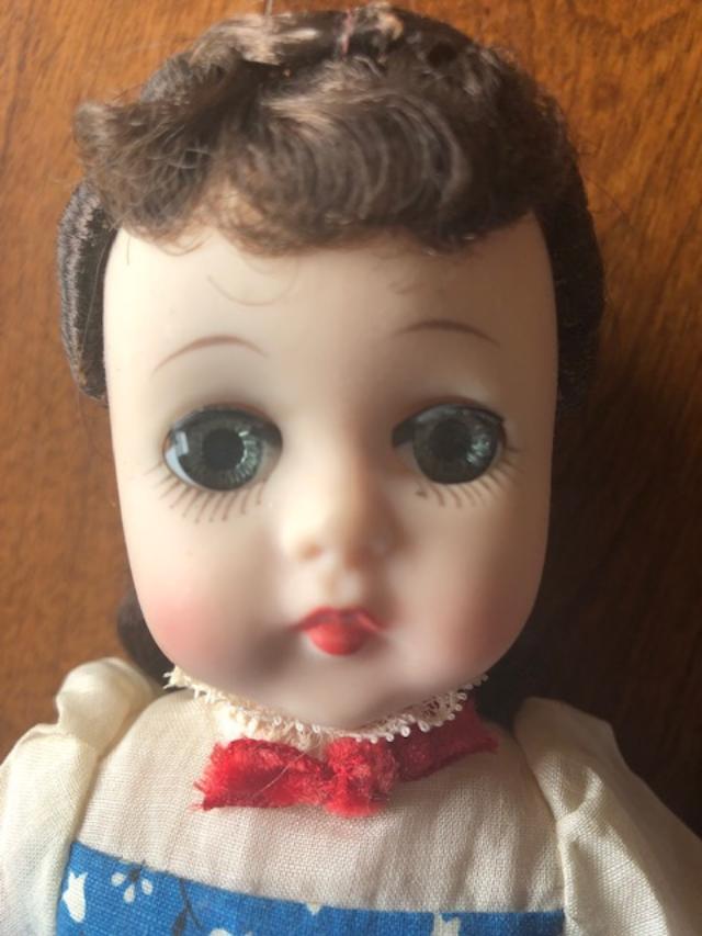 She is 11" long and has straight, moveable legs. The tag on her dress says Little Women "Jo" by Madame Alexander. Her head, arms, and eyelids are also movable. I don't know any history, it was given to me by my sister in law who received it from a friend.