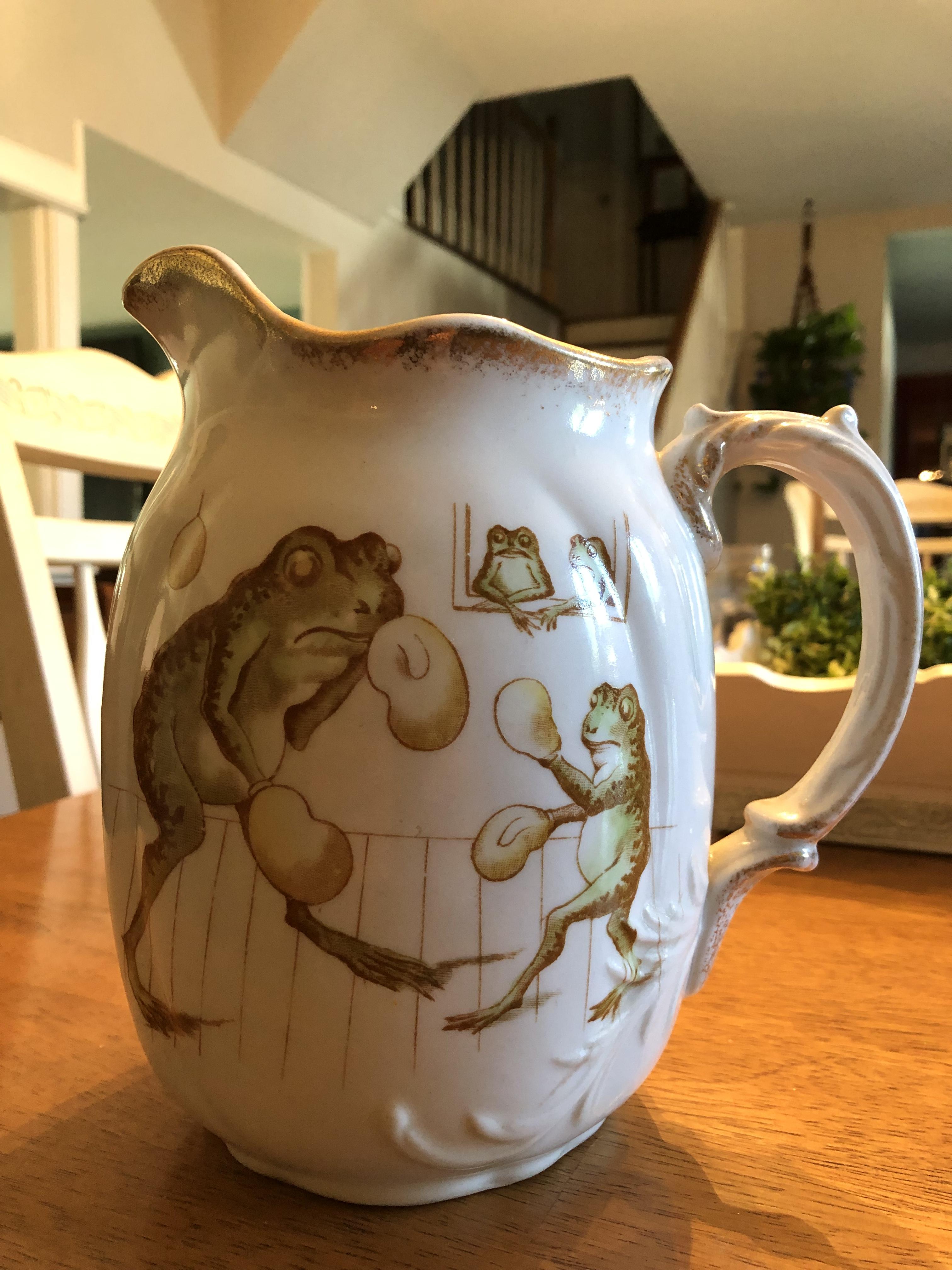 If anyone could please enlighten me with info about my pitcher I would appreciate it very much. I have found history of the company but have been unable to locate any examples of their works with this design. I love the whimsy of it and would be interested in knowing if it is rare and an approximate value.