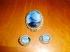 yellow gold filigree brooch with blue stones.