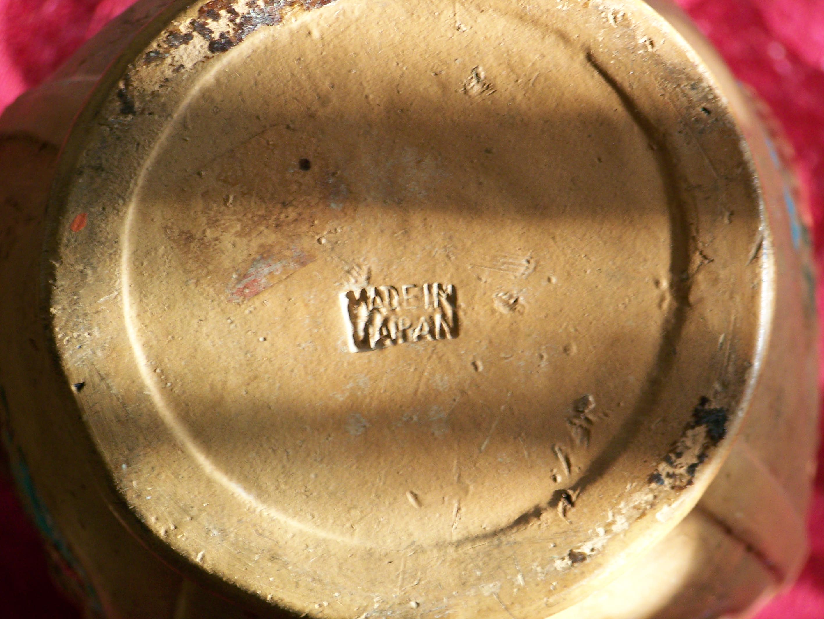 A small piece of the rim had broken and evidently glued back on by my aunt.