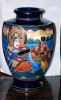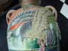 The vase is matte, un-glazed, seemingly unpainted except for a small bit of painting on the embossed flowers.