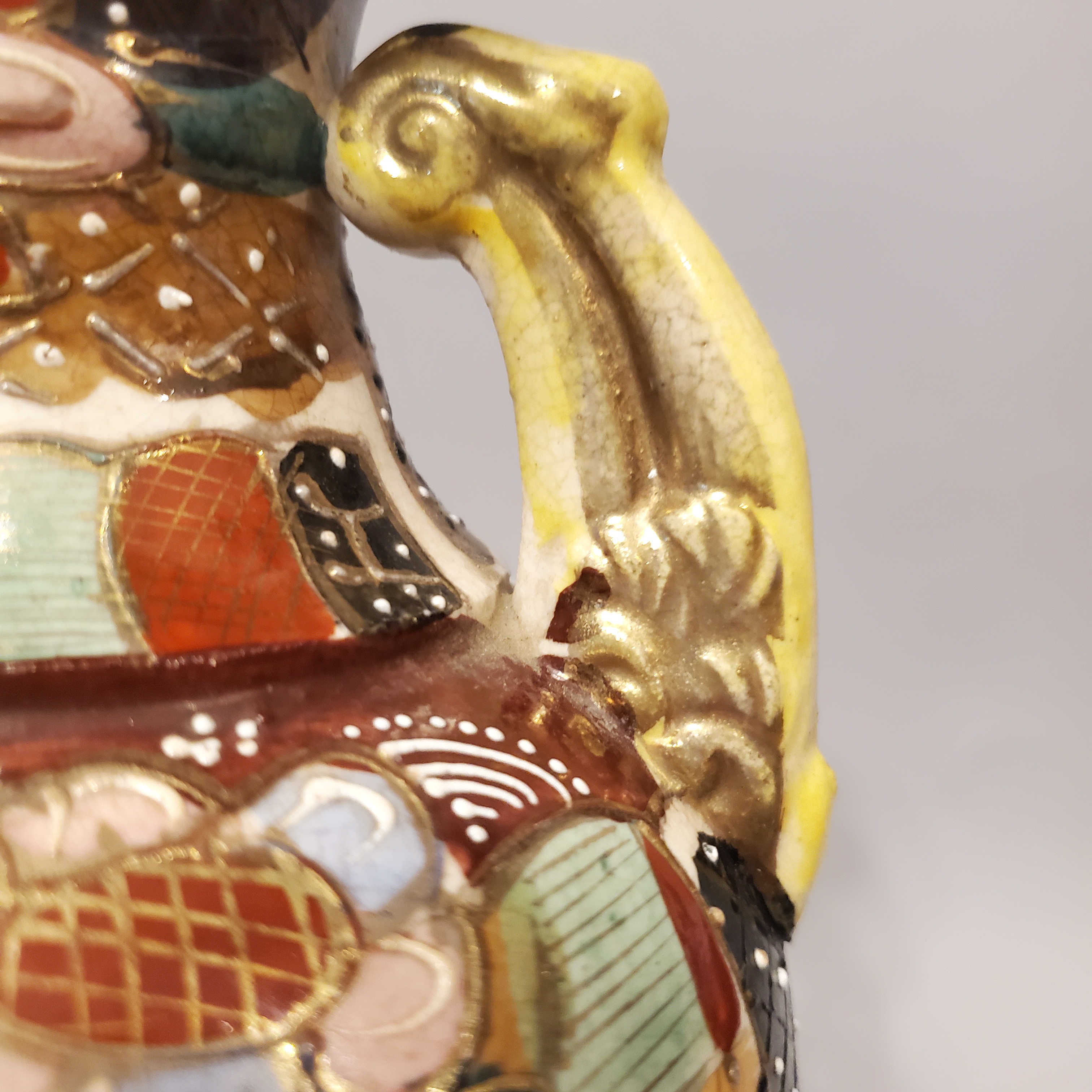 I'm just speculating, I don't know nearly enough to make any kind of educated guess myself. Which is why I am here... asking if anyone has knowledge of Satsuma pottery that can/will offer an experienced word regarding this piece?