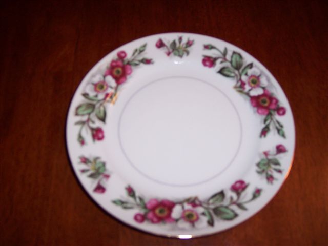gravy dish, sugar dish, sugar dish cover, milk dish, 1 lg platter, 1 med platter, 1 potato dish, 15 cups, 12 saucers, 12 salad, 12 soup bowls, 12 plates