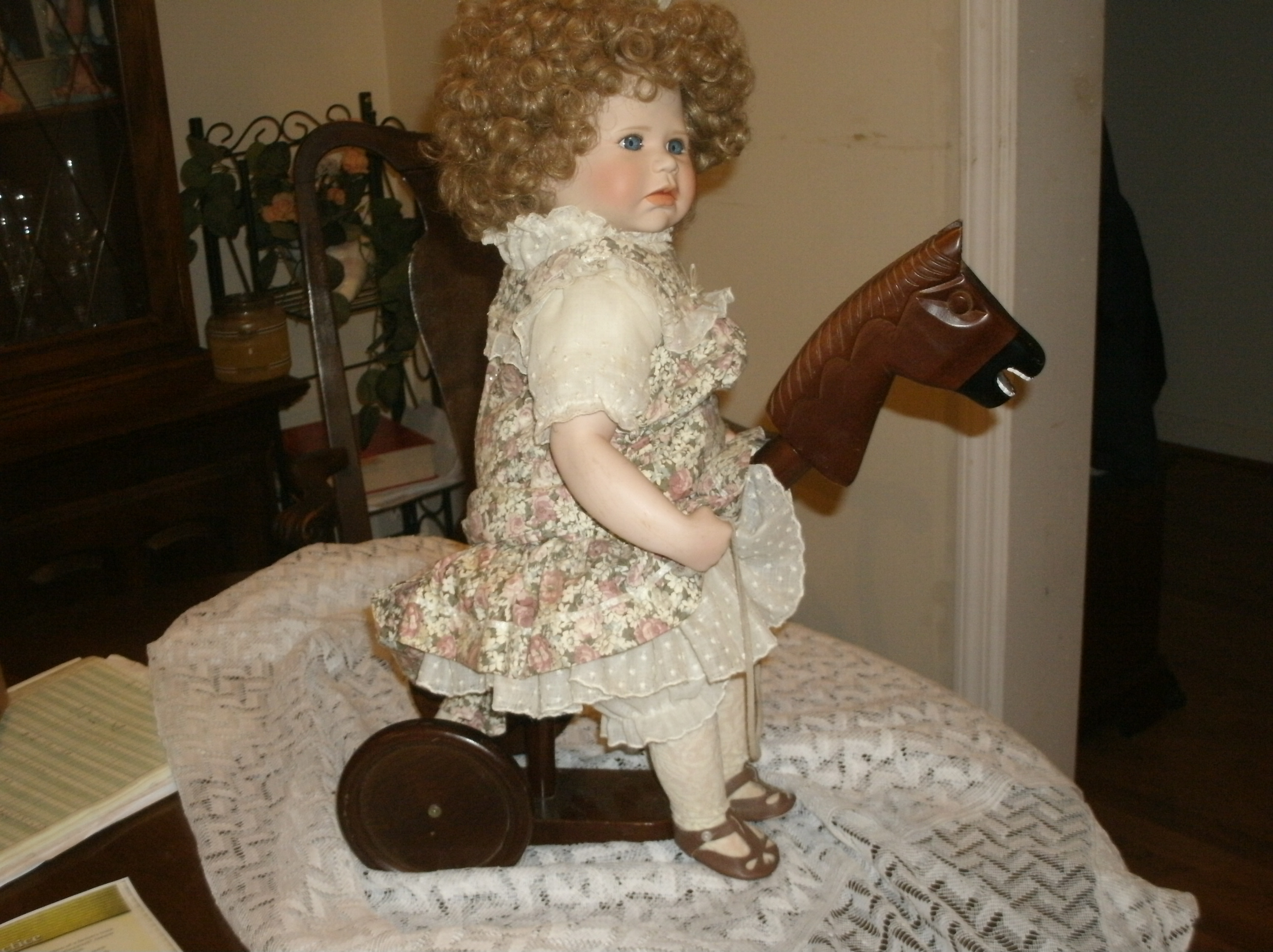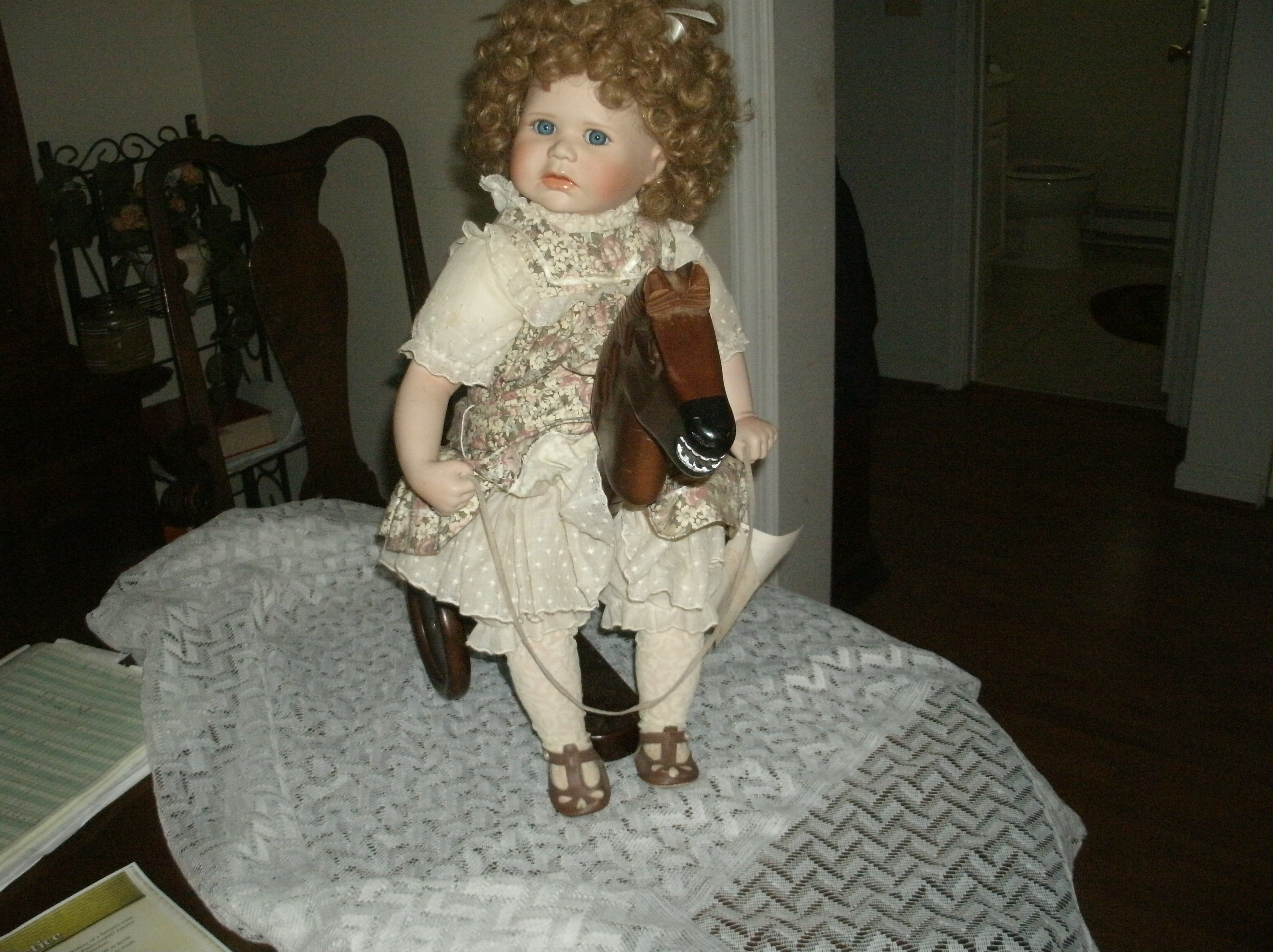 These porcelain dolls are reproductions of Victorian examples, and were hugely collectible during the late 1980's to early 90's. Demand has since declined for them, here's a link for you