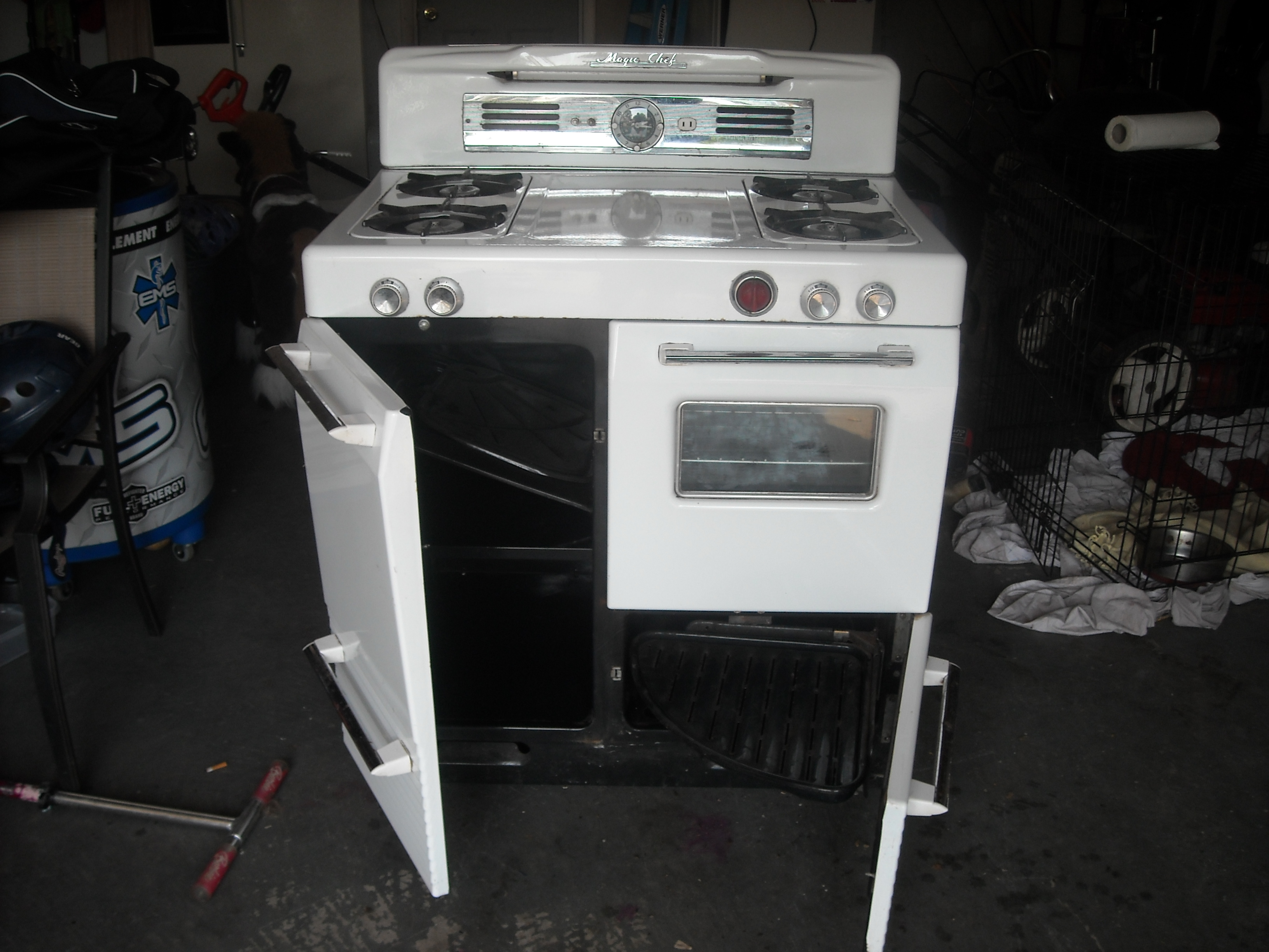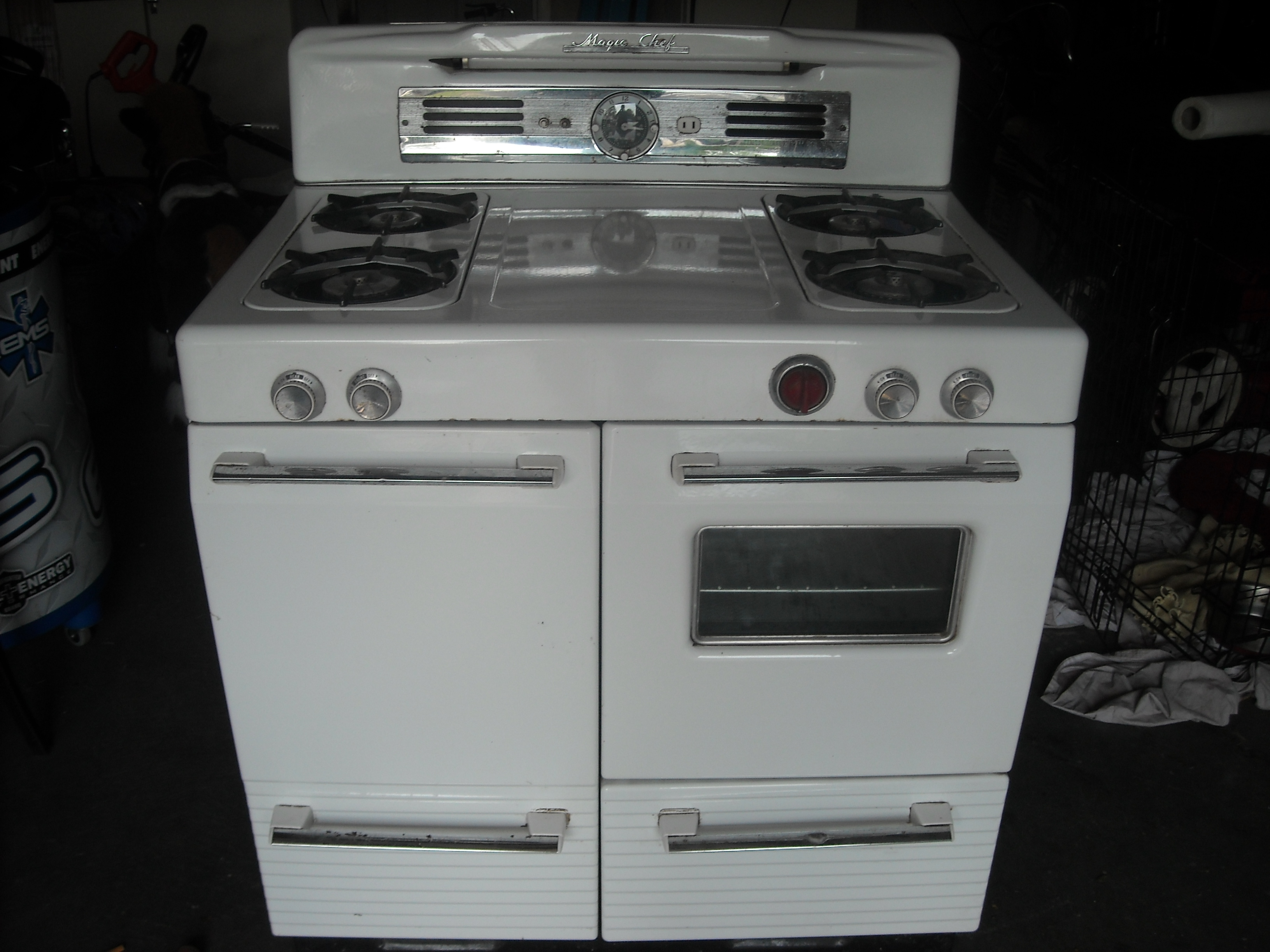 It was found in a basement still hooked up. I know its a gas stove but do not know if its in working condition. The electric outlet on the front still works.