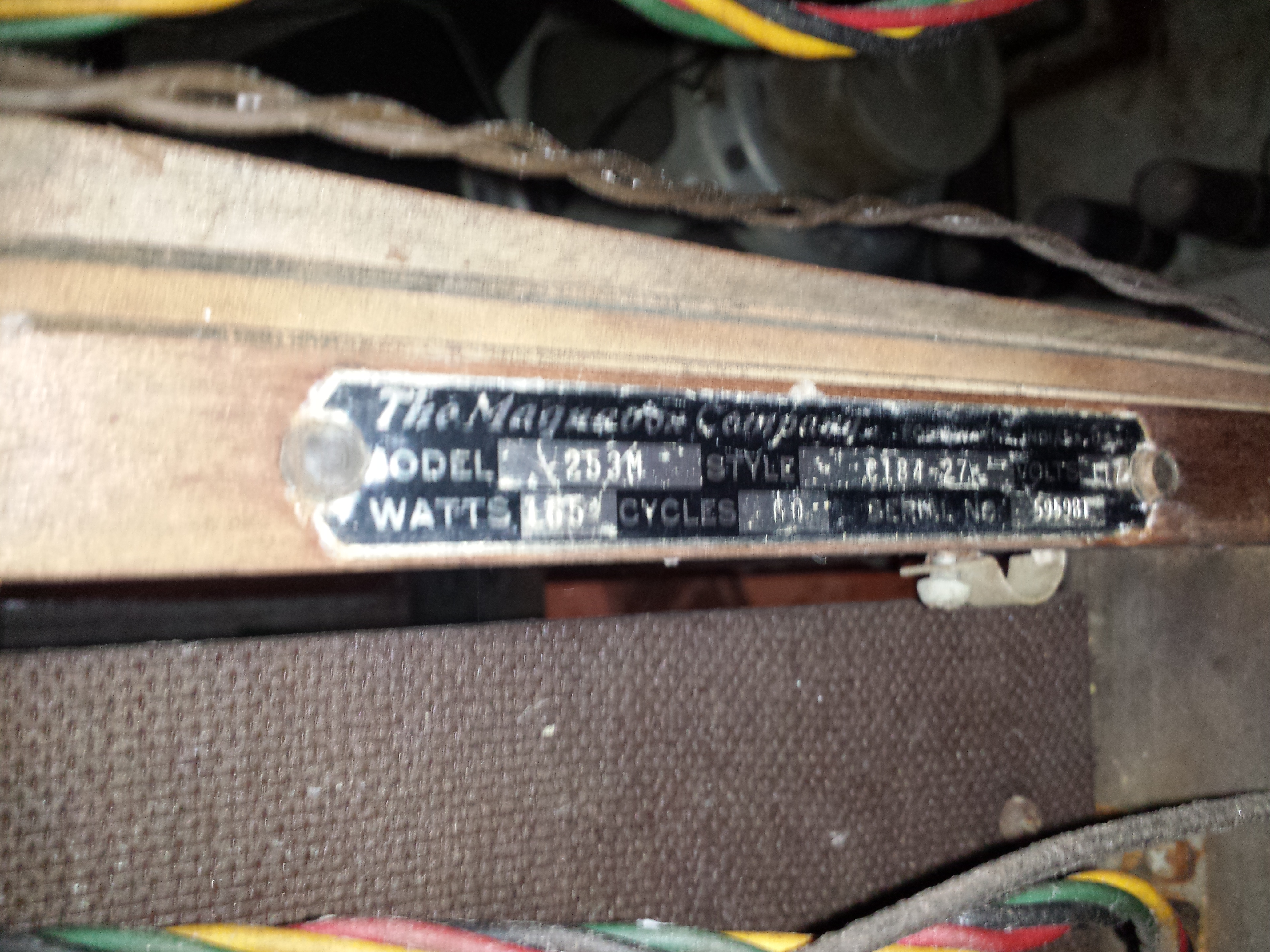 Magnavox label and model/serial/style tag pictured