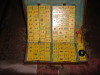 The backs of the tiles look to be bamboo and the tiles themselves appear to be bone. It has quite a few obvious chips and cracks and is missing the sticks, dice and other additional pieces, but doesn't seem to be missing any tiles I believe. It has 5 drawers with the bottom drawer being a press print load (broken) and the door slides down into the bottom.