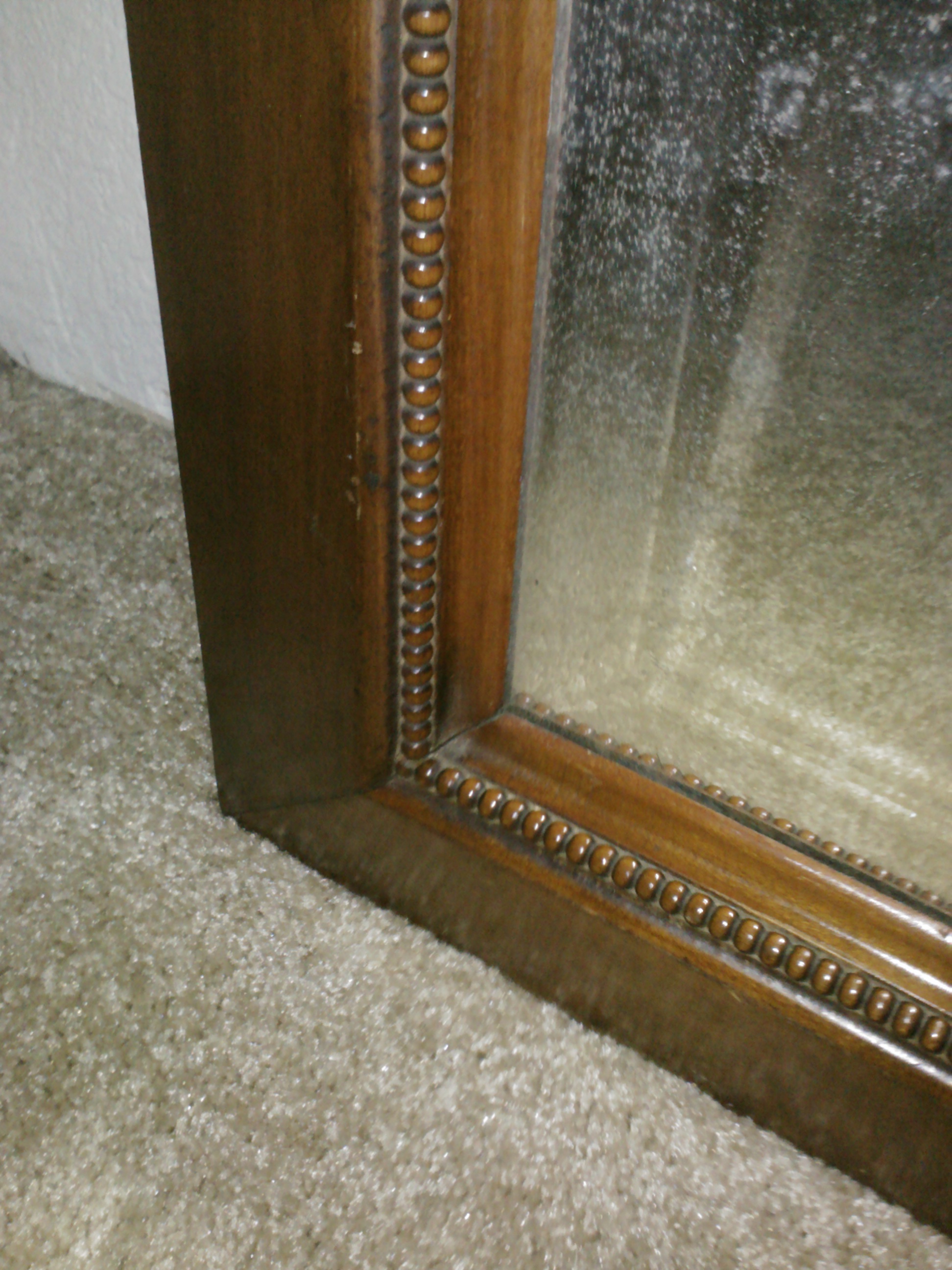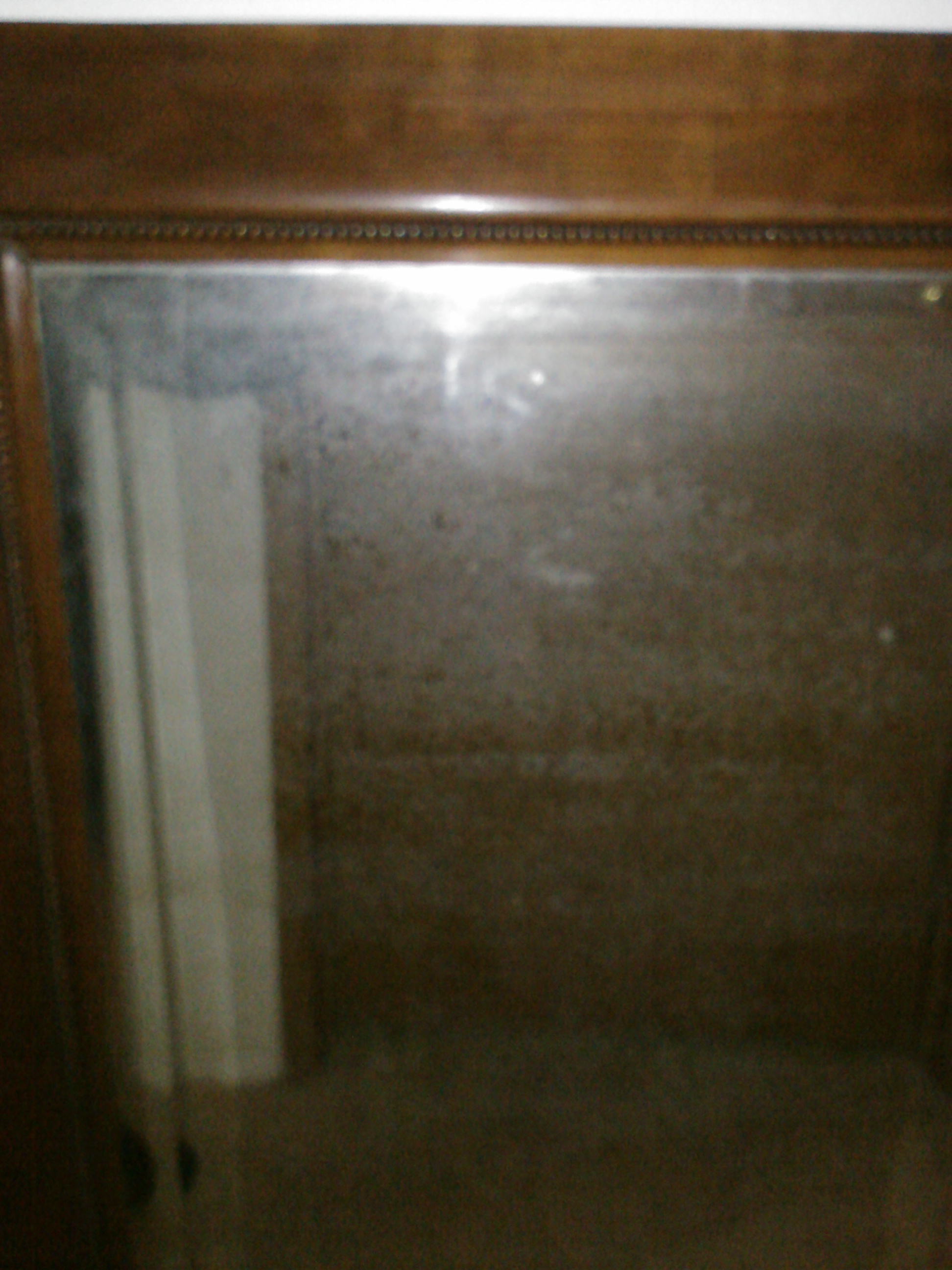 Mahogany rectangular carved beading beveled mirror. I was told it is over 100 years old, the mirror is darker and "foggy" it needs to be restored, there are no markings or labels anymore it has beautiful beading carved into the mahogany.