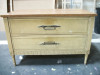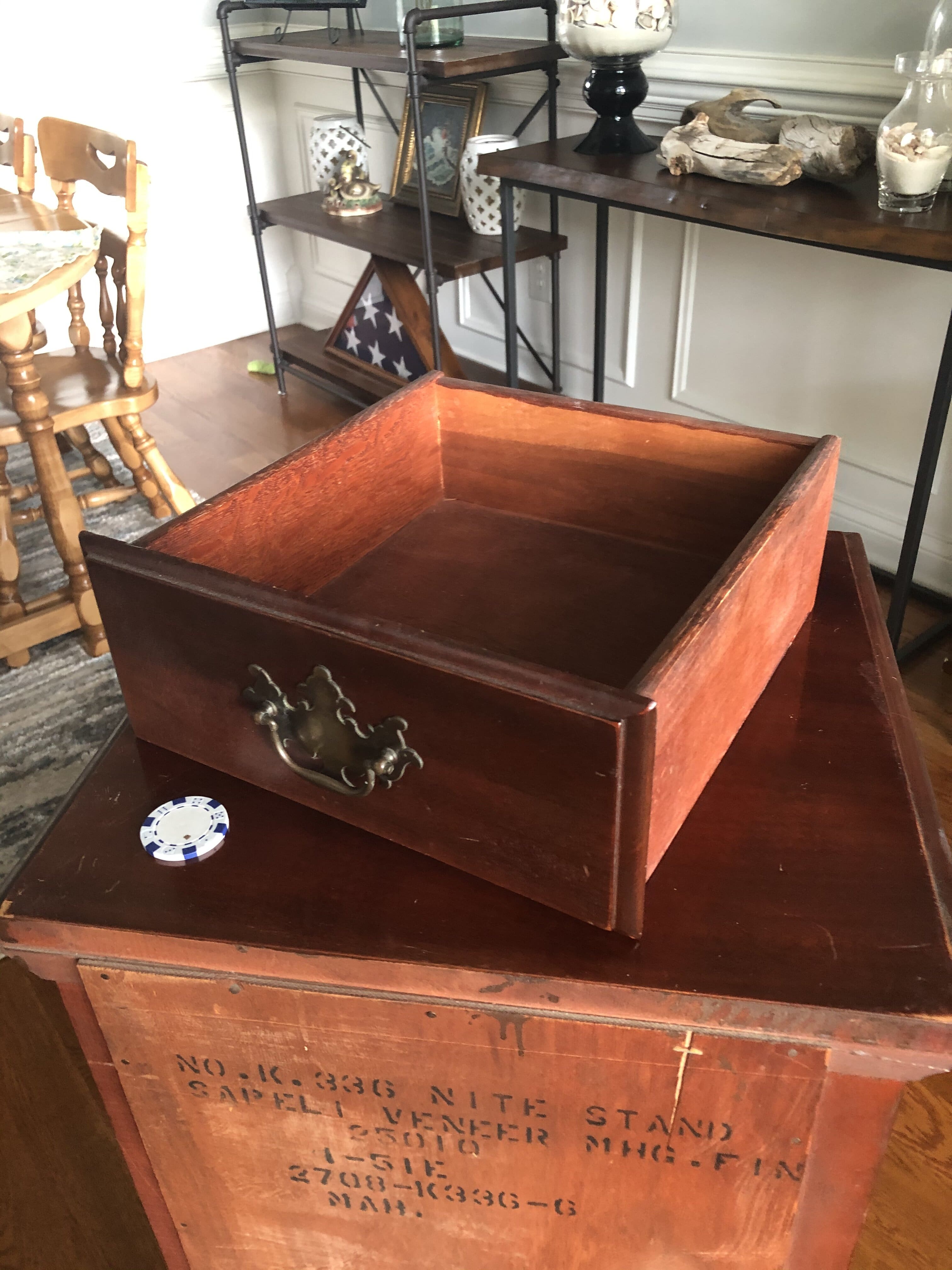This is an old “nite” stand that was my great-grandmother's from when she lived in California (the 70s and 80s according to my mom). We don’t know who made this piece and I cannot find anything about it EXCEPT for a very similar piece that user @kvwestover has, which is the whole reason I made this account. The bottom has an R on it, which I presume is an initial/signature of the person's name who made this piece; however, my mother doesn’t know the story of how my great grandmother got the piece or anything else. The wood burned/stamped label on the back reads as follows: [NO.K.336 NITE STAND] [SAPELI VENEER MHG.FIN] [25010] [1-51E] [2708-K336-G] [MAH.] There is also that flowery liner that I found in the drawer, which my mom was unsure if it was part of the original piece or if it may have been a separate purchase by my great-grandmother. I do worry that some of the “6” in the label might be a “G”, but if you know anything about this piece, who made it, anyone who would like to buy it, and/or how much it would sell for I’d be greatly appreciative and I hope the photos I’ve taken are decent quality (taken with an iPhone 8+).