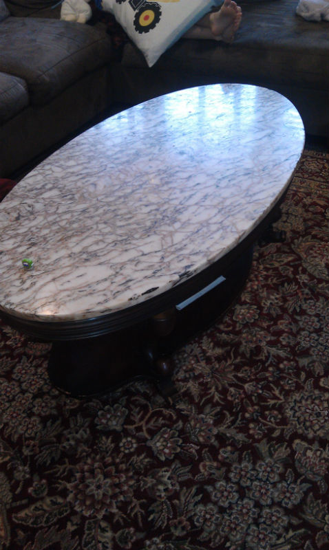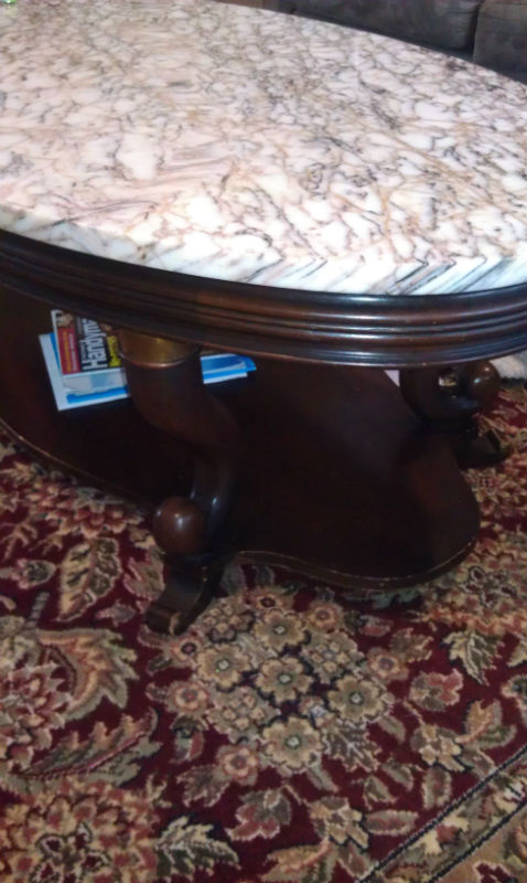 Mahogany coffe table with carerra marble top.
