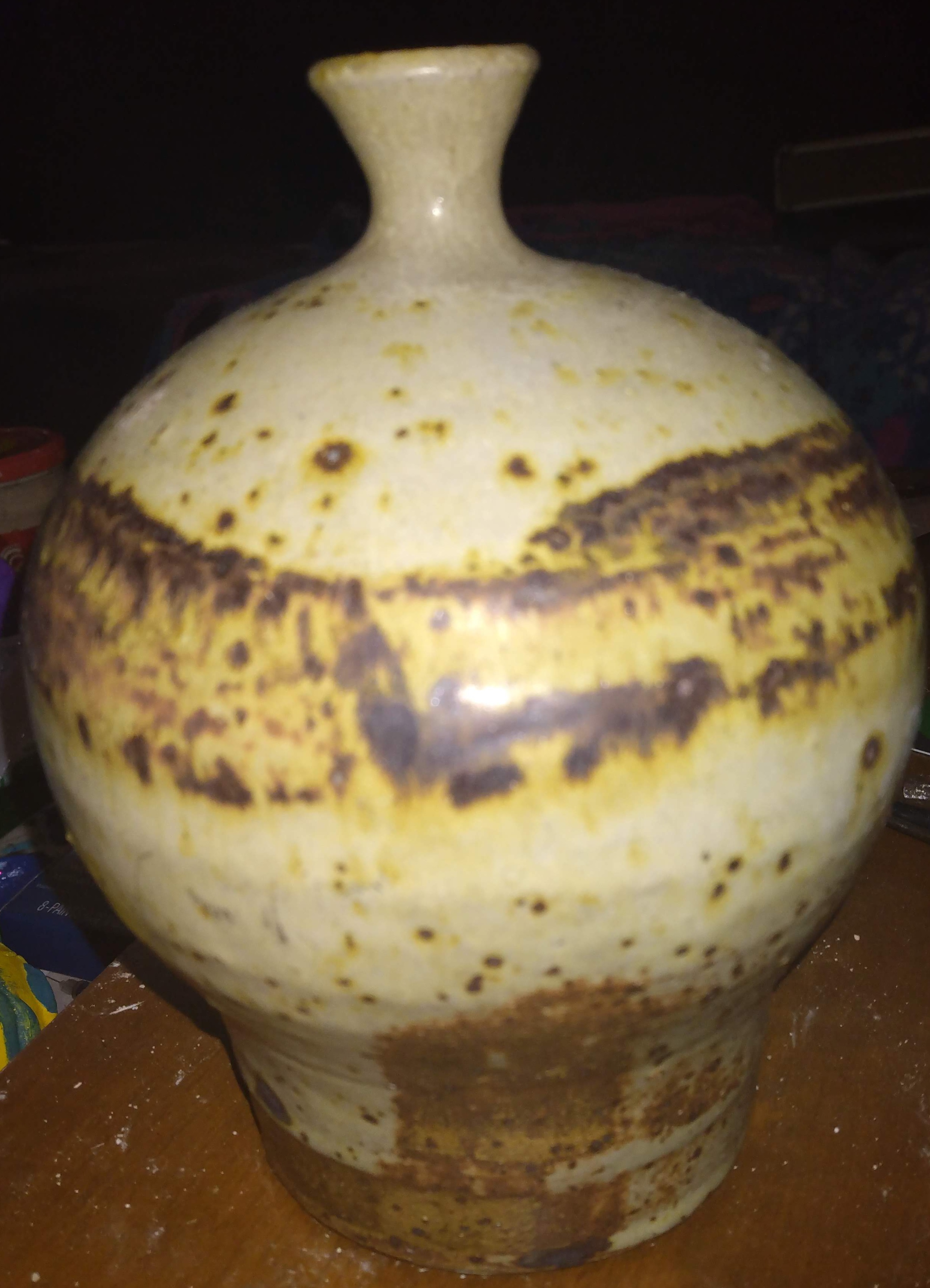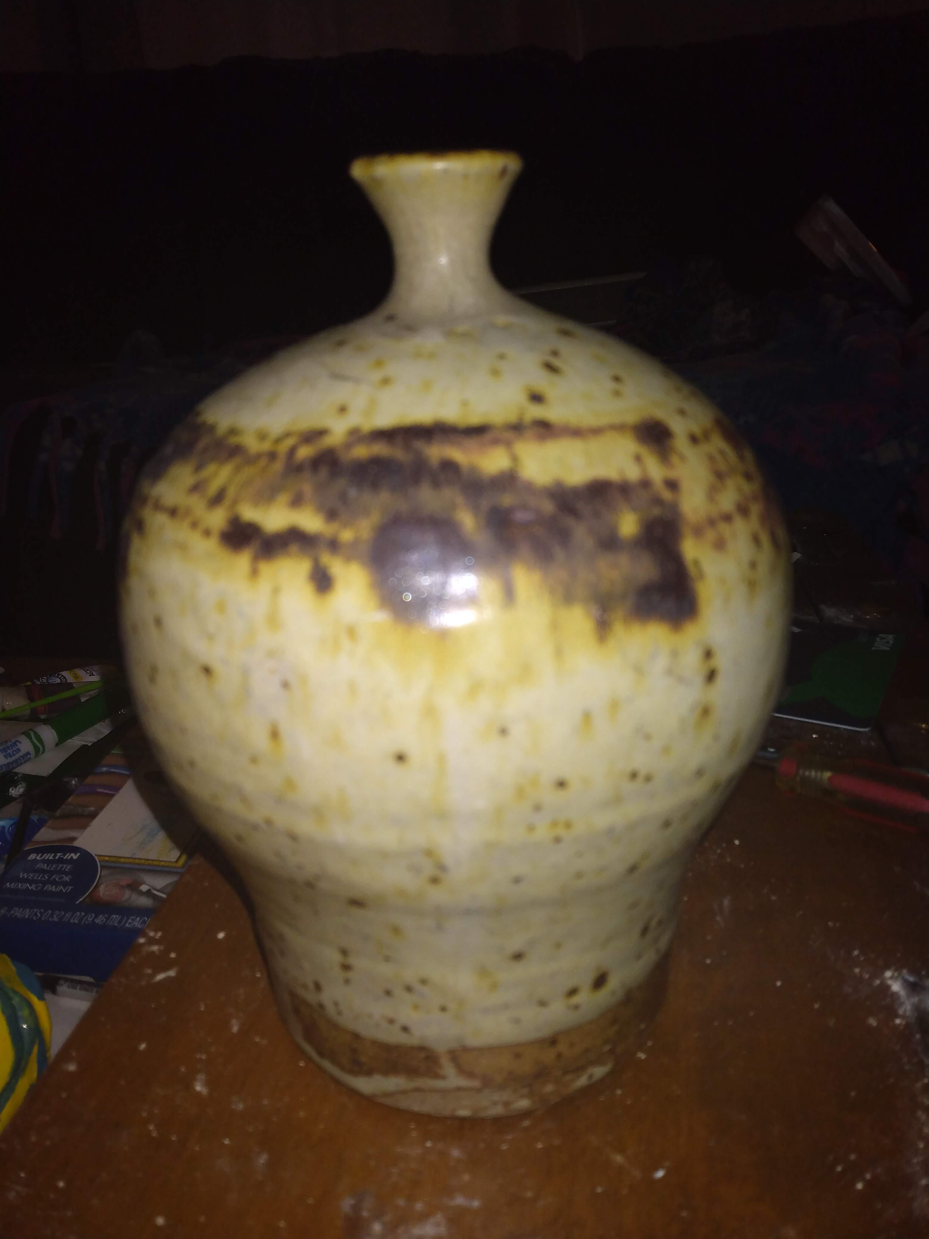 Medium brown and tan glazed vase