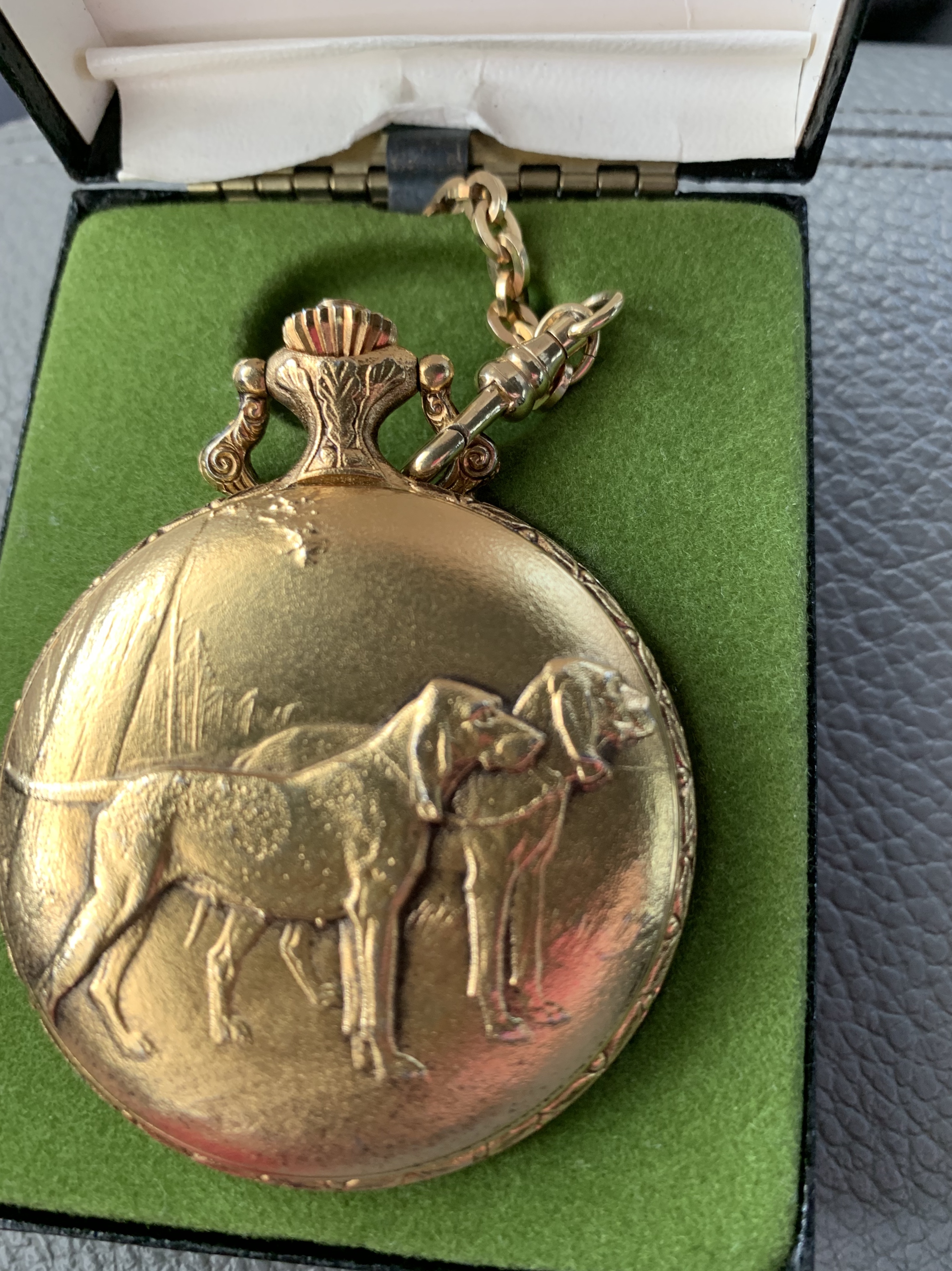 This is a Majestime gold hunter dog 17 jewel pocket watch in excellent working condition!