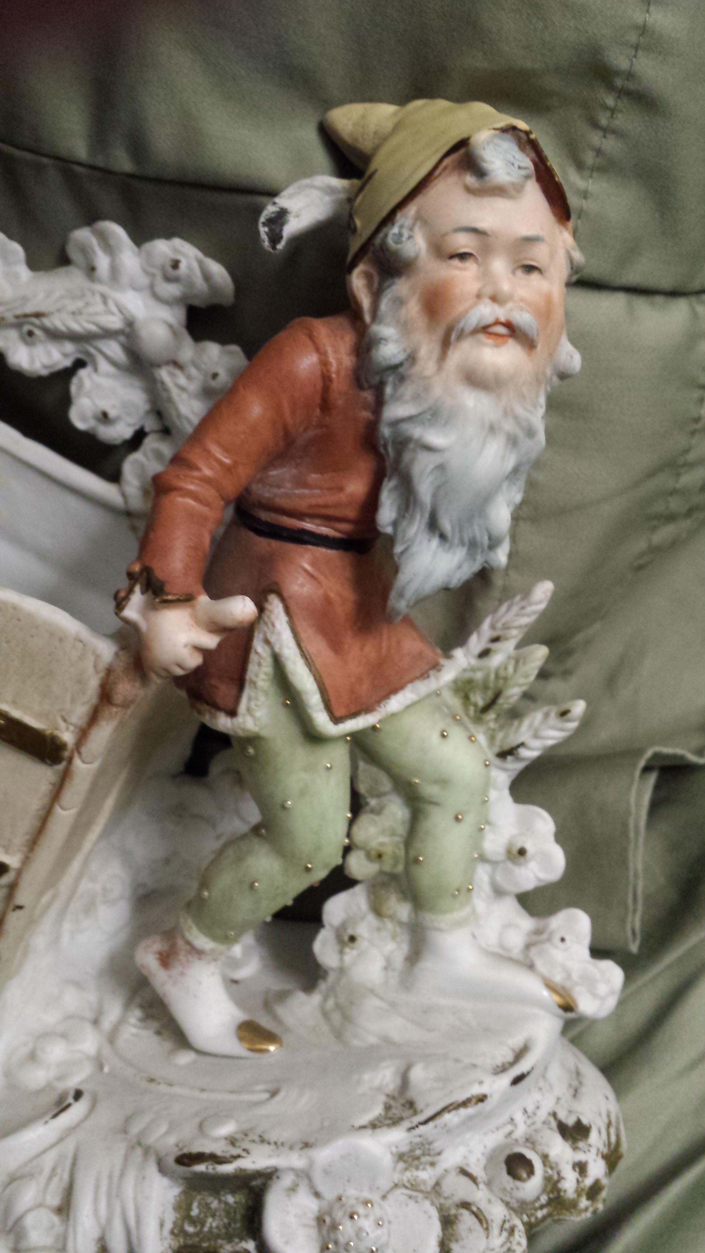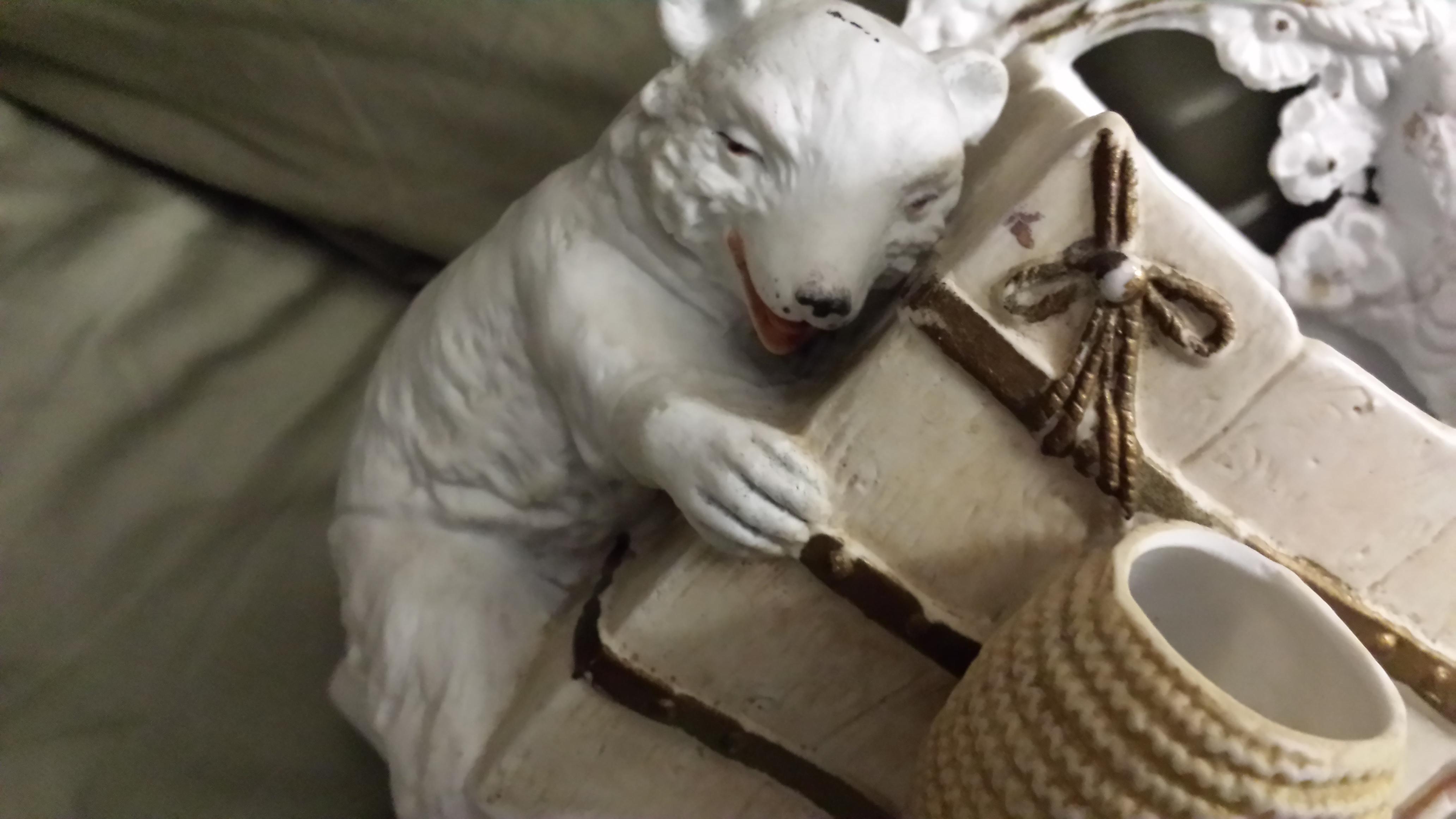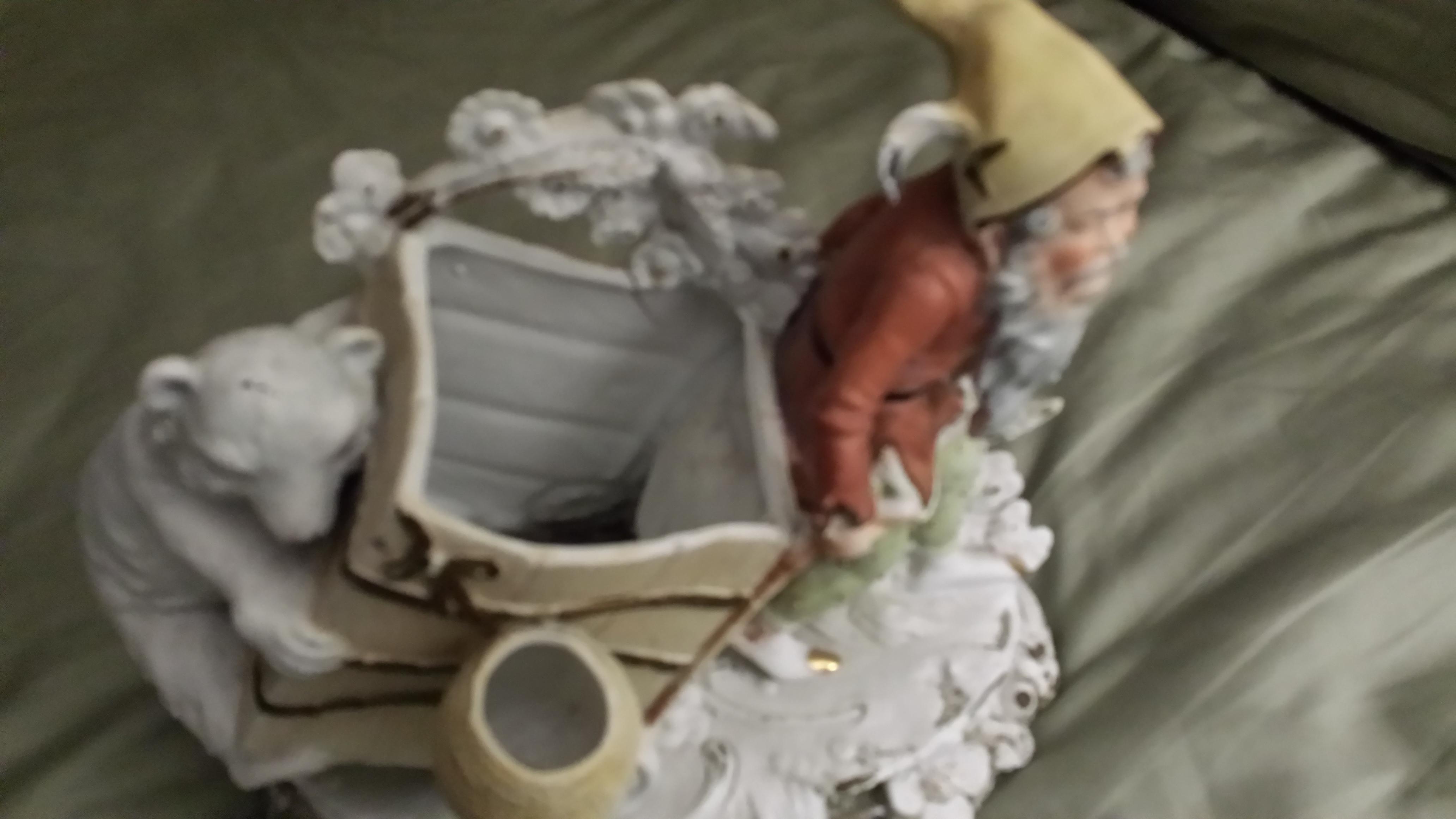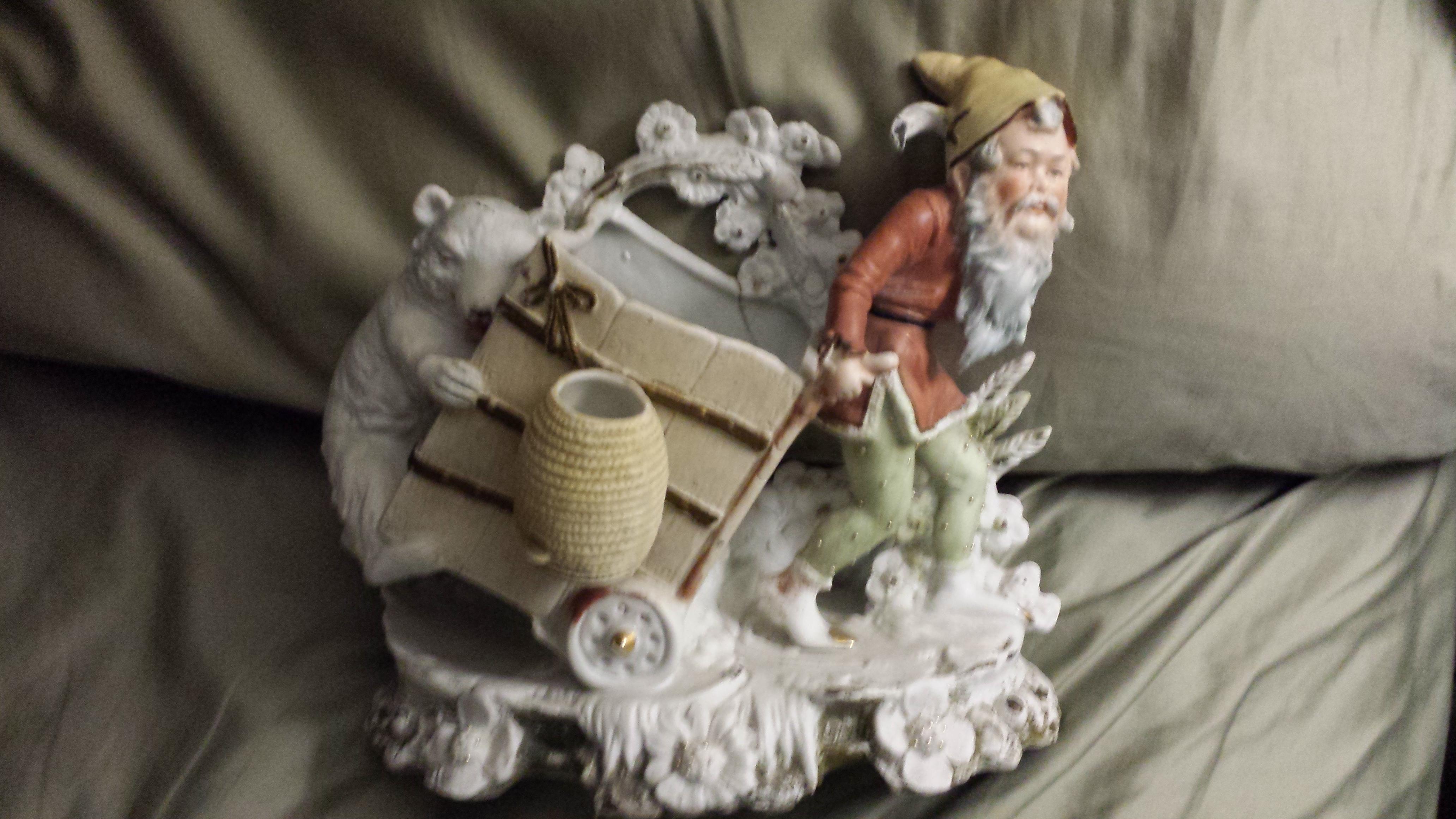 Porcelain figurine with cart and bear on back.