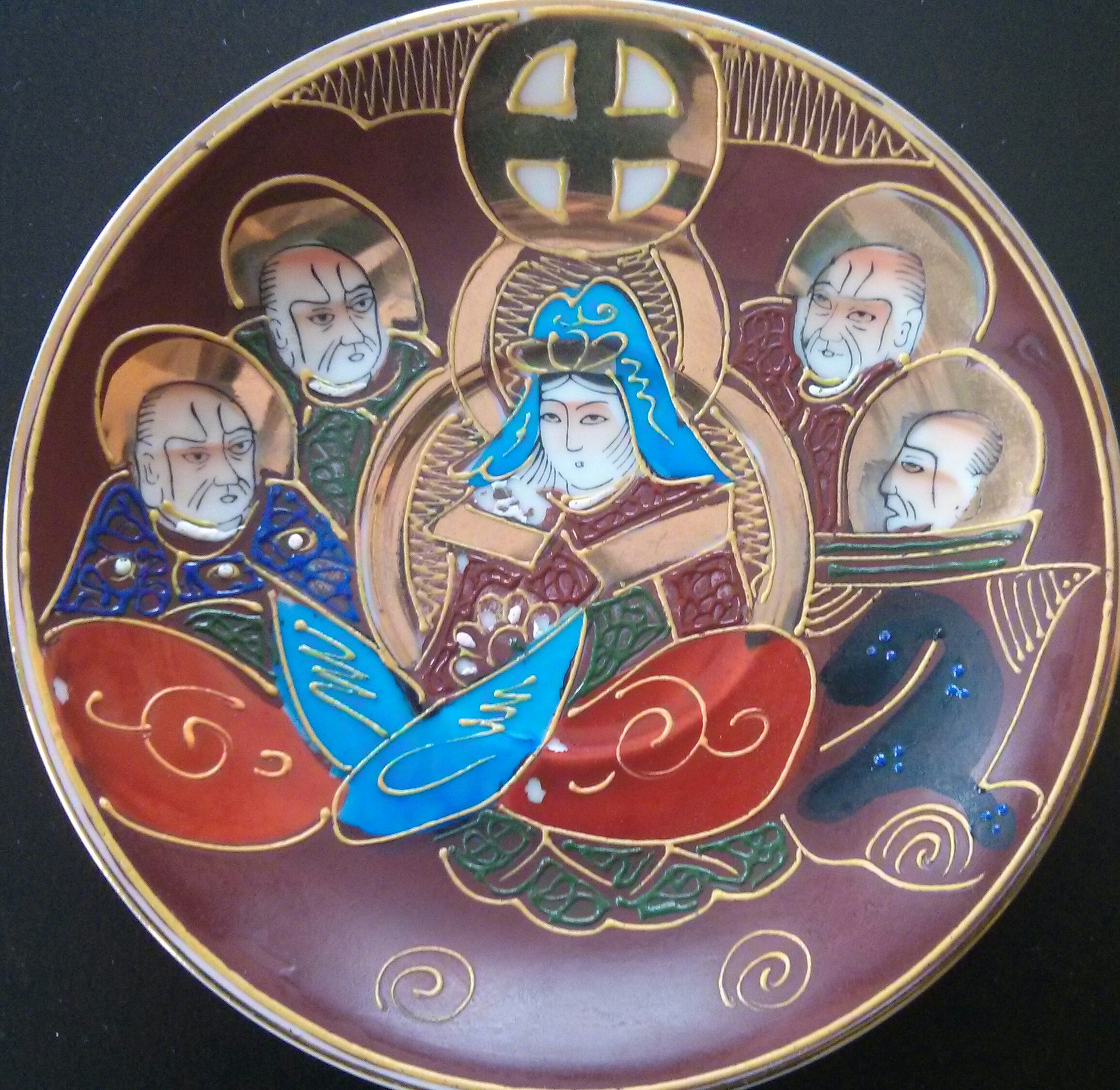 China tea set made in Japan by Manna. Depicts 5 Japanese figures.