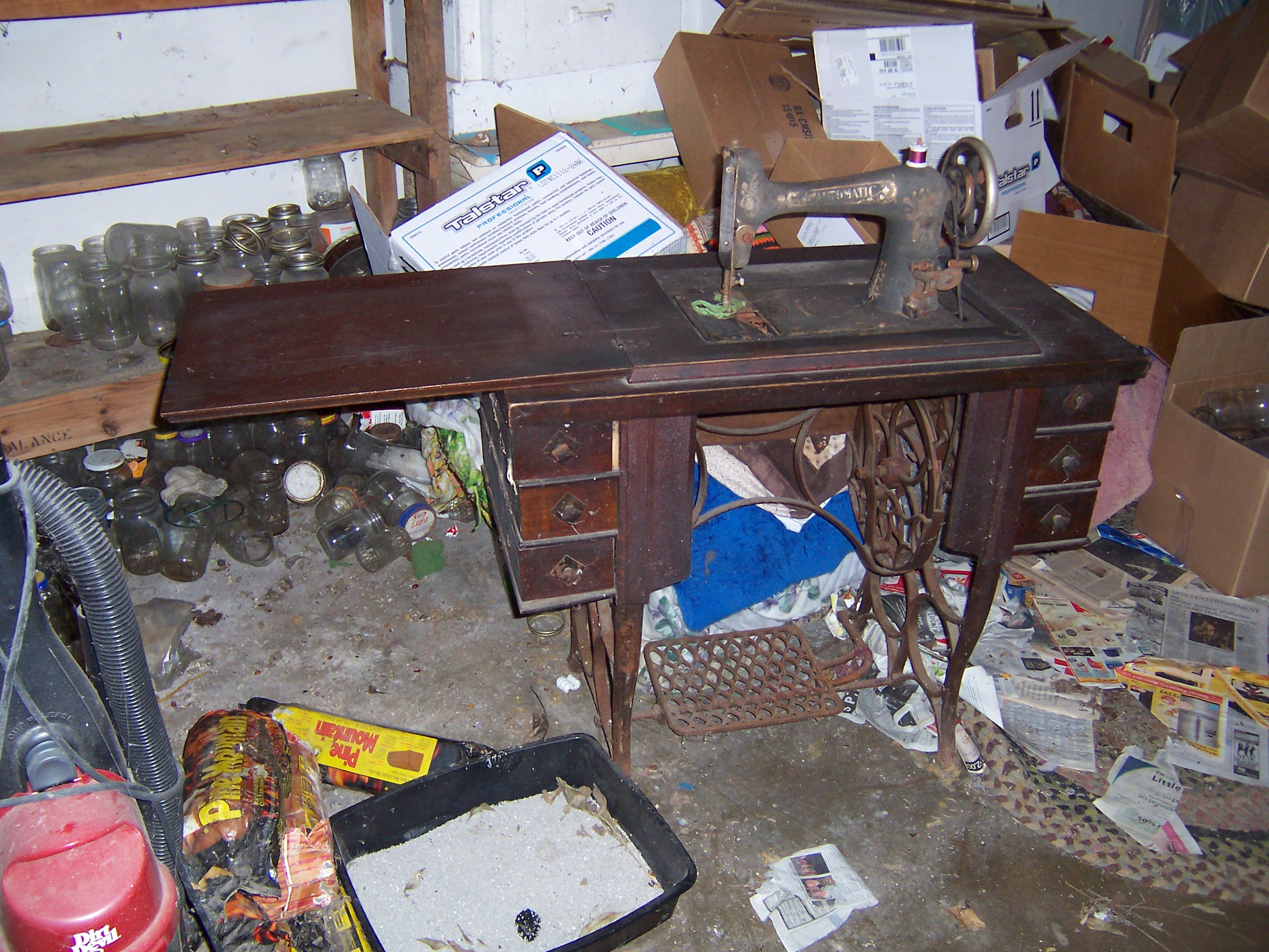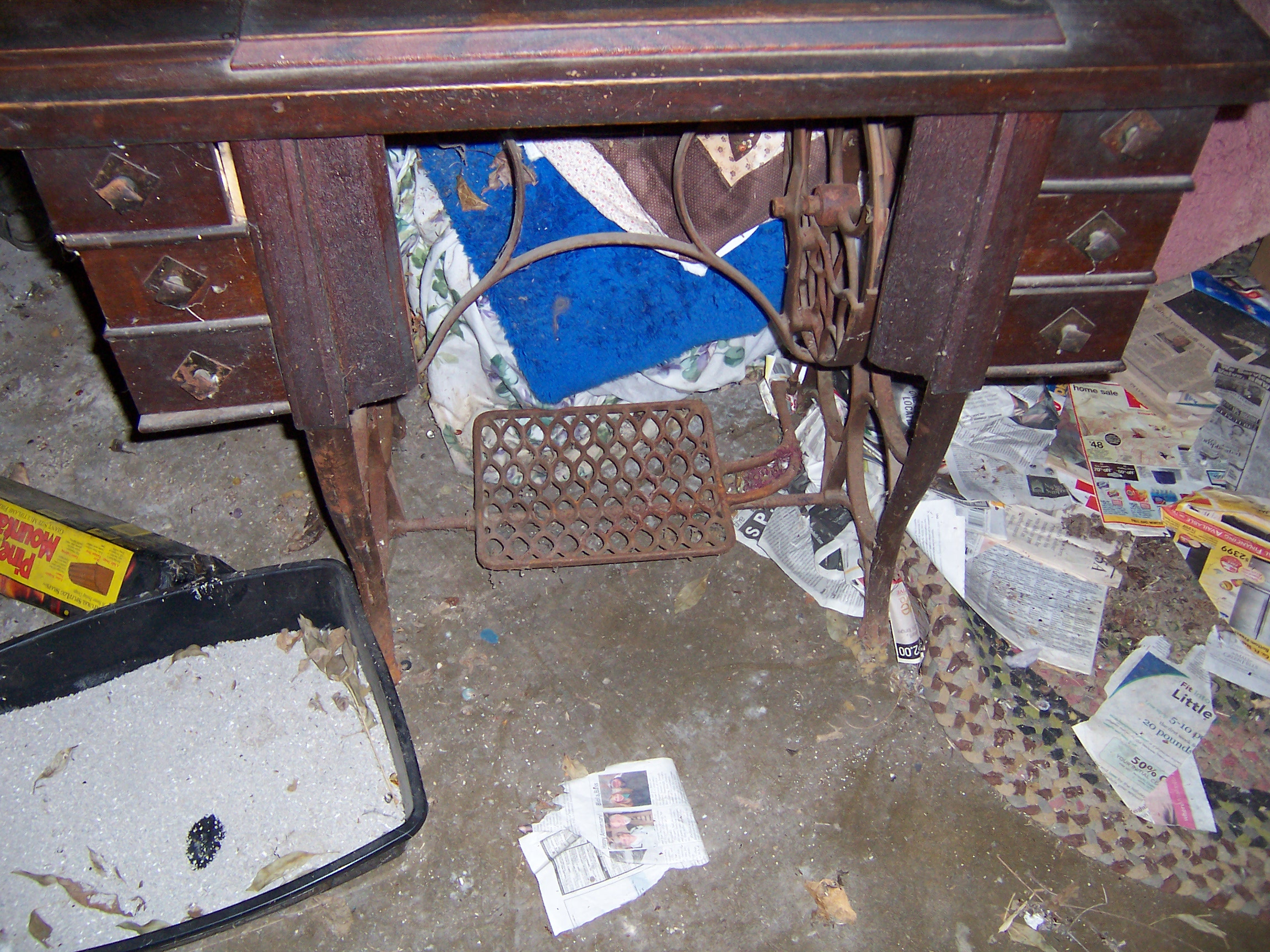 Vintage Singer sewing machine that was my mothers.. Not sure which decade it came from. Maybe 20's-40's? Beautiful cabinet. As you can see, if you fold the side board back over, the sewing machine disappears and it is just a table.. Has 6 drawers with an additional 3 stand along drawers.. Push pedal
