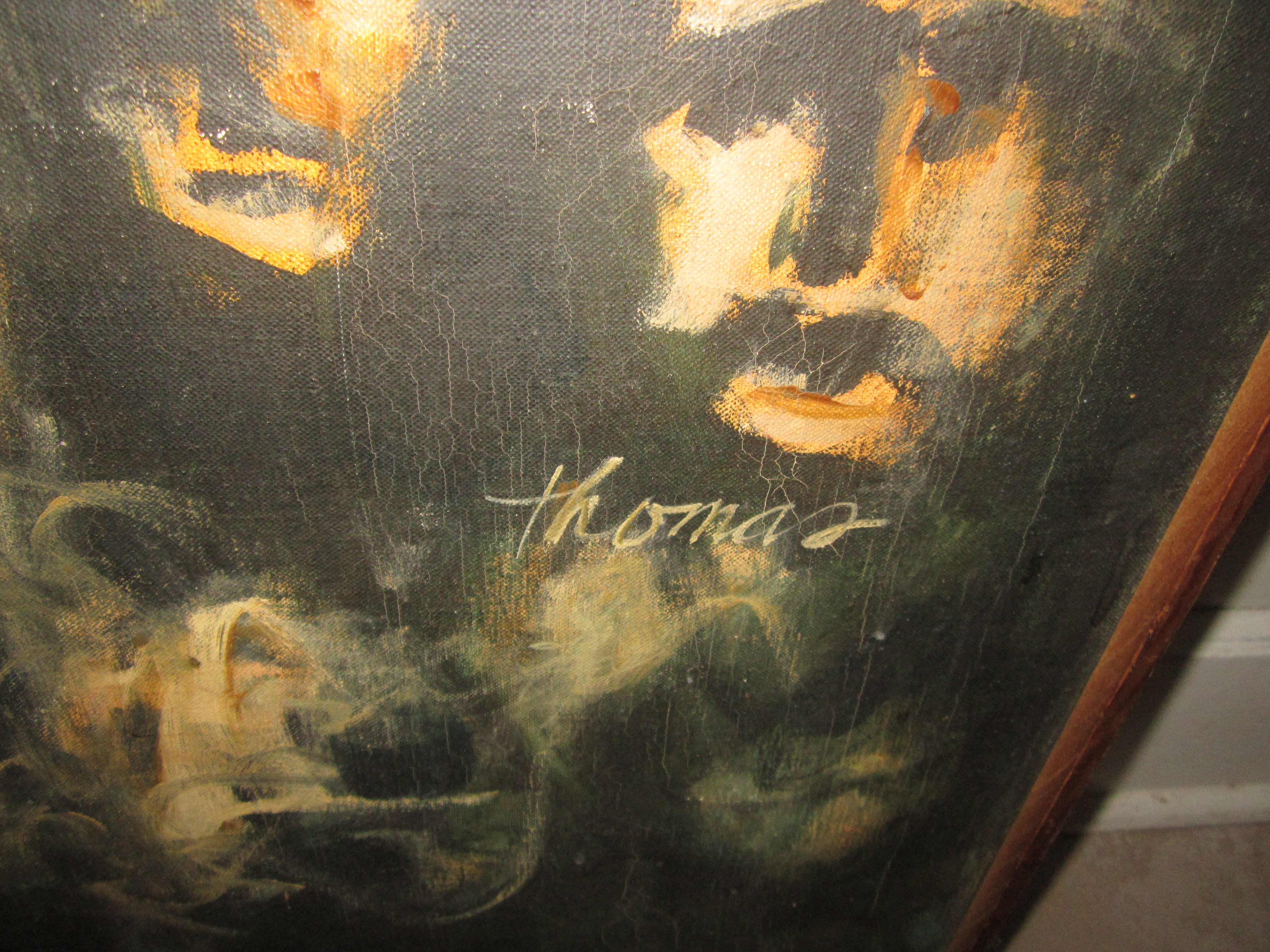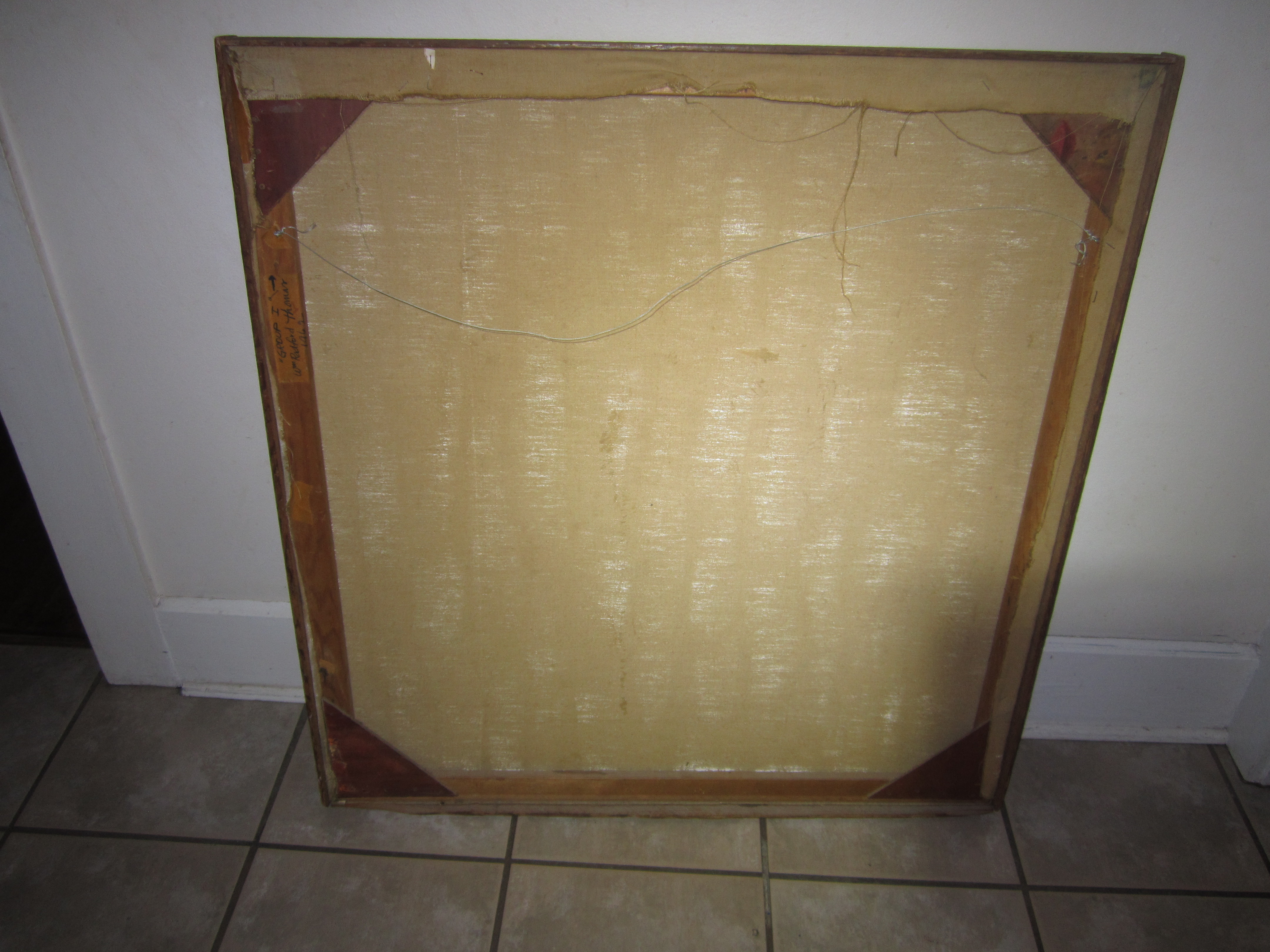 Condition Assessment: The painting is in fair condition, rated 3/5. There are visible signs of wear, including minor cracking in the paint, particularly around the edges. The frame shows some age-related wear but is intact.