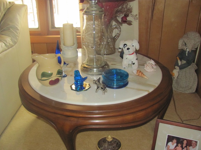 This is a marble topped table with wooden legs. Just curious if anyone know whats the DMC or MDC means and the value of this table.
