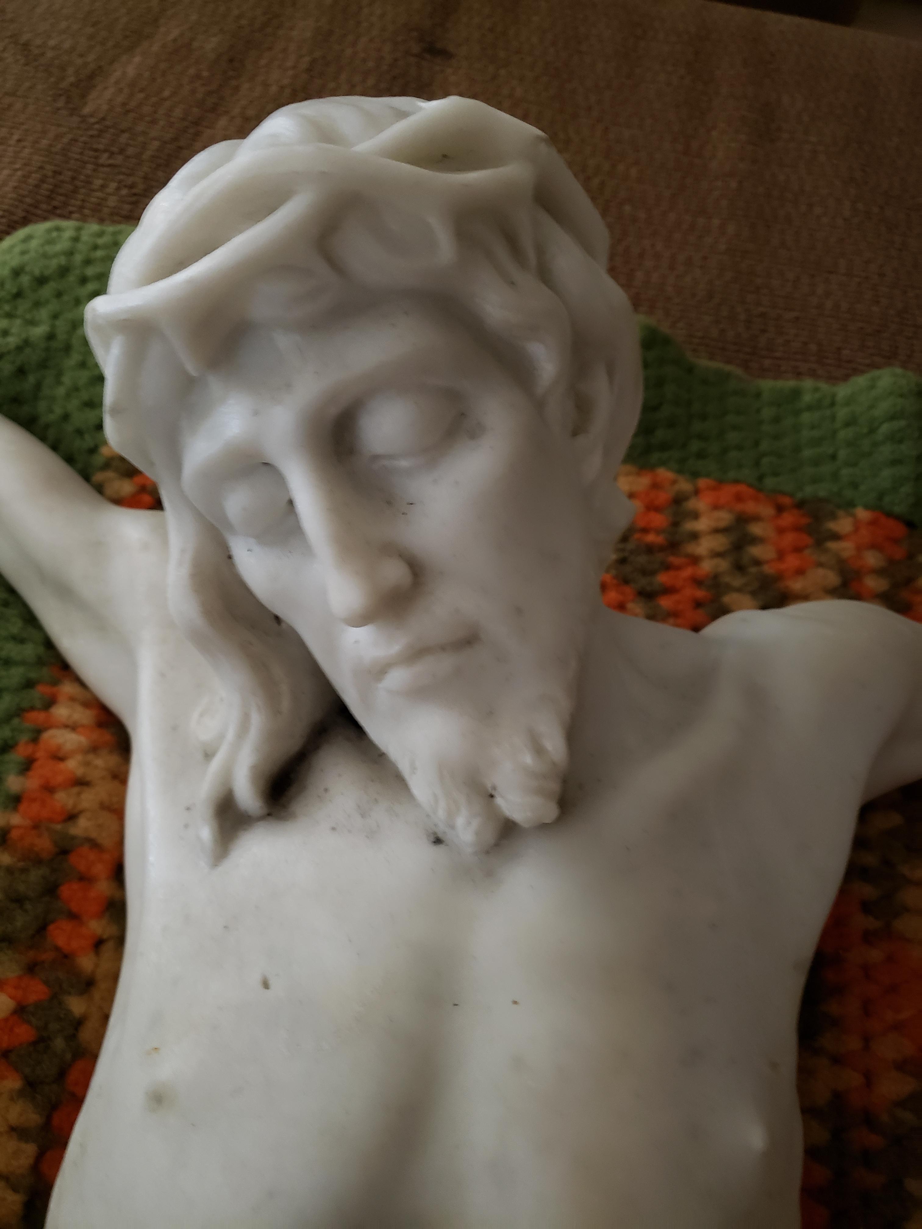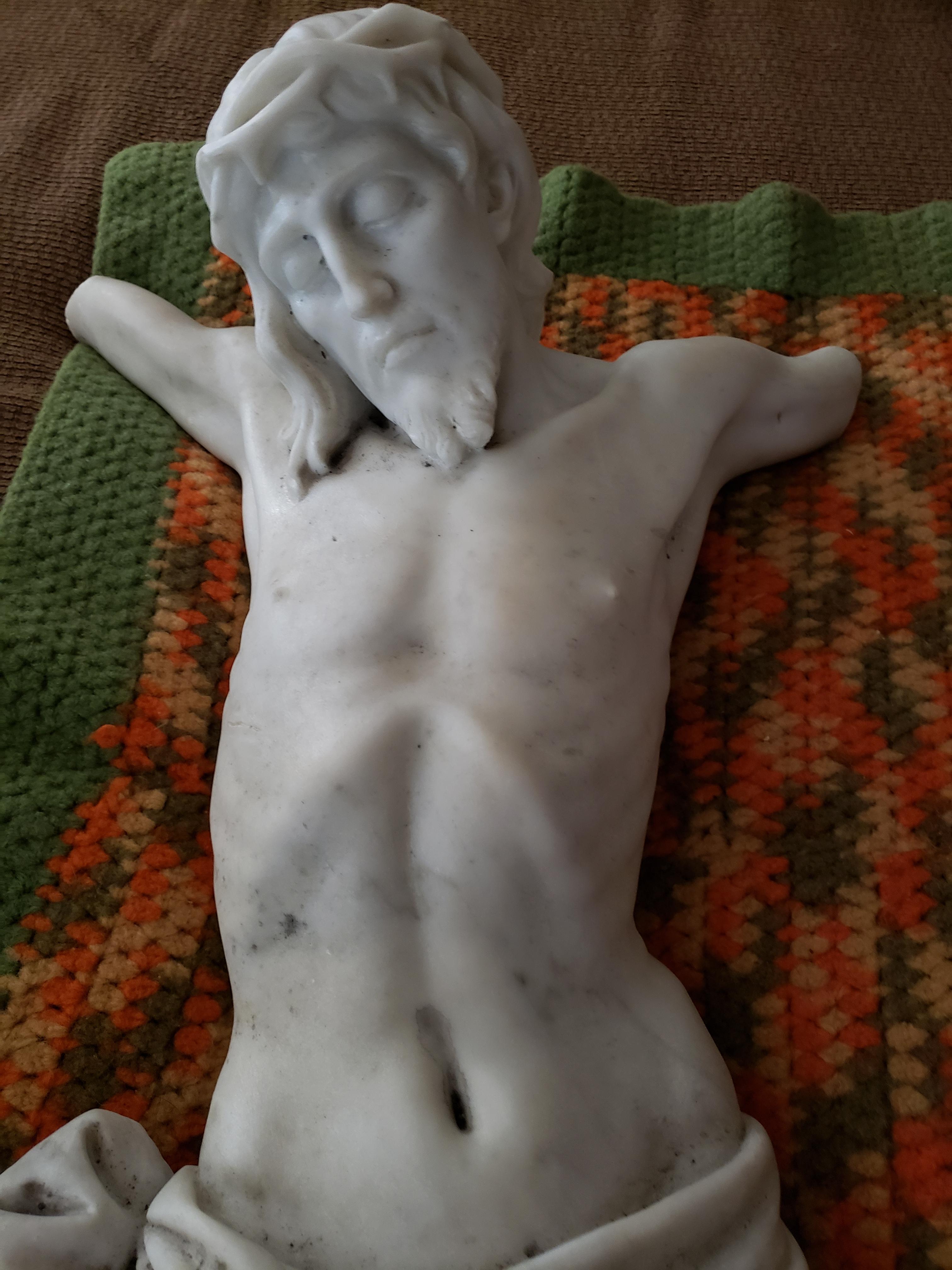 Solid Marble statue (not sure what type of marble) of Crucified Christ. 30" long.