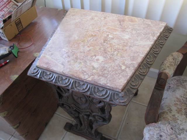 There is a crack in the wood on the front. The rest is in good condition. There are no cracks or chips in the marble. I was hoping to find out if this is American or foreign,about what year it was made and a value. I want to offer it to my local antique shops but I need to know what I have before I go see them. I appreciate any info you might know. Thanks, Charlie