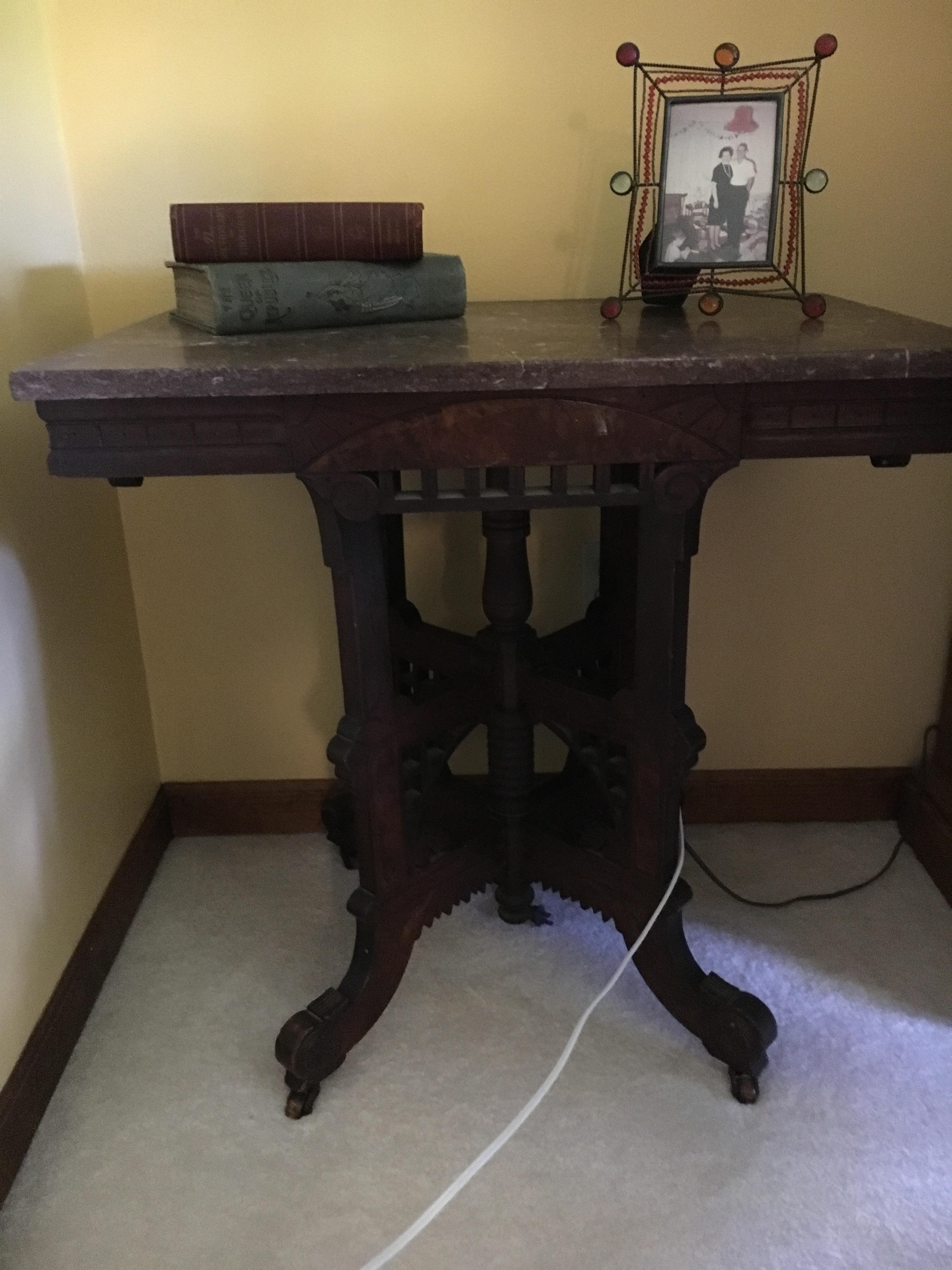 Dark wood marble top side table