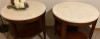 Coffee Table, two end tables, and an Occasional/Sofa/Hall table. I'm worried since I've seen two other posts on here with no comments. Does this mean no one knows? These have marble tops, mahogany bottoms, harp bases. There are flower accents and tongue and groove drawers. The word Victorian is stamped in one of the drawers. I need to know their value for my mother. She tells me they're over 50 years old. I do not know. I have seen them in antique stores before, but I want to be sure I do not over or under price when she is ready to sell. Please help!