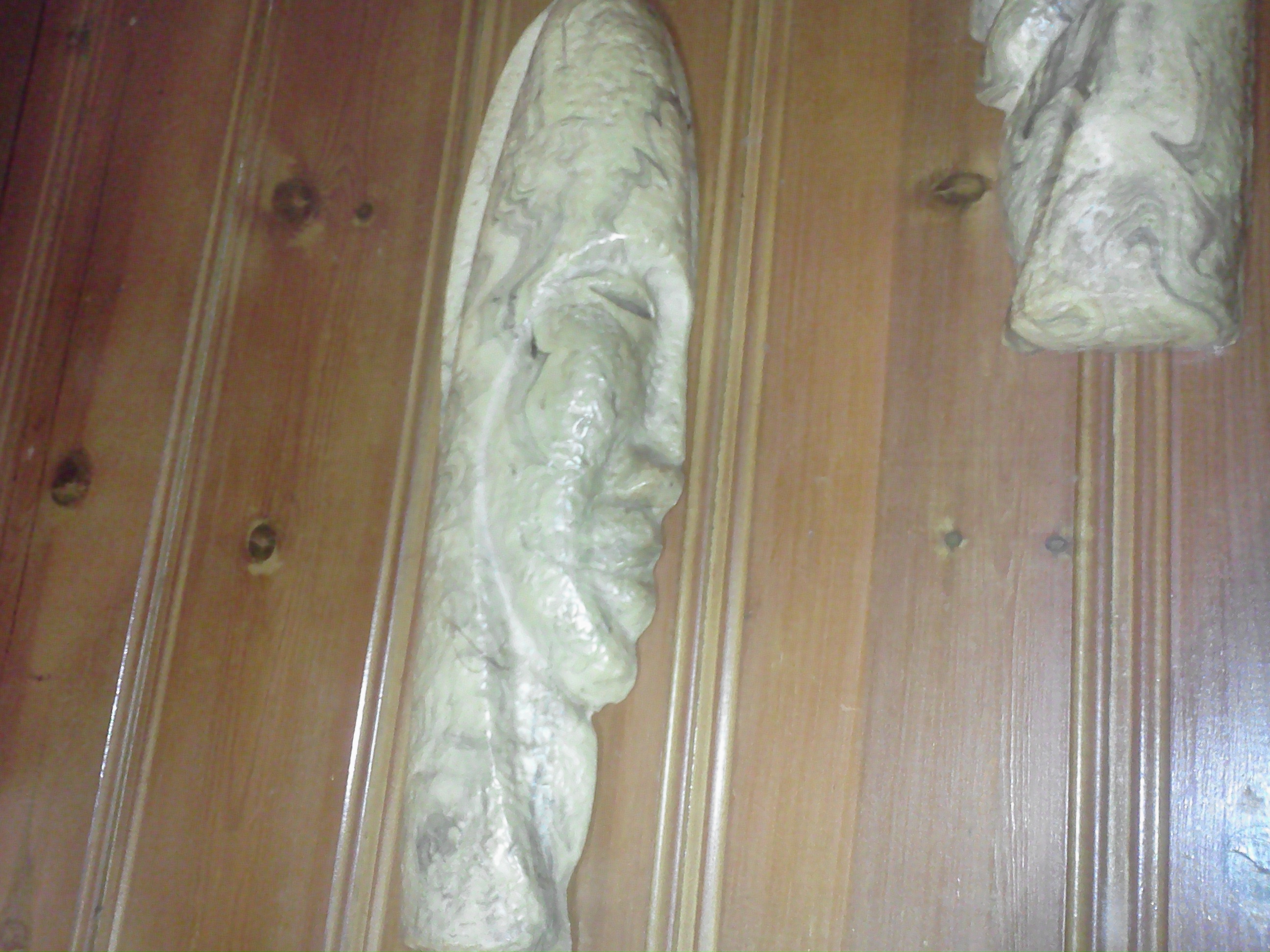 I have no clue what I have in my possession and have not had luck finding the same item -- entirely possible that I am searching for the wrong stuff in the first place. I've attached pictures of the set of heads that I have. Any lead or information here is very valuable to me at this point. Items appear to have no written markings or information on them and are quite heavy. Backs are white for the most part except for the materials it's made from having swirls.
