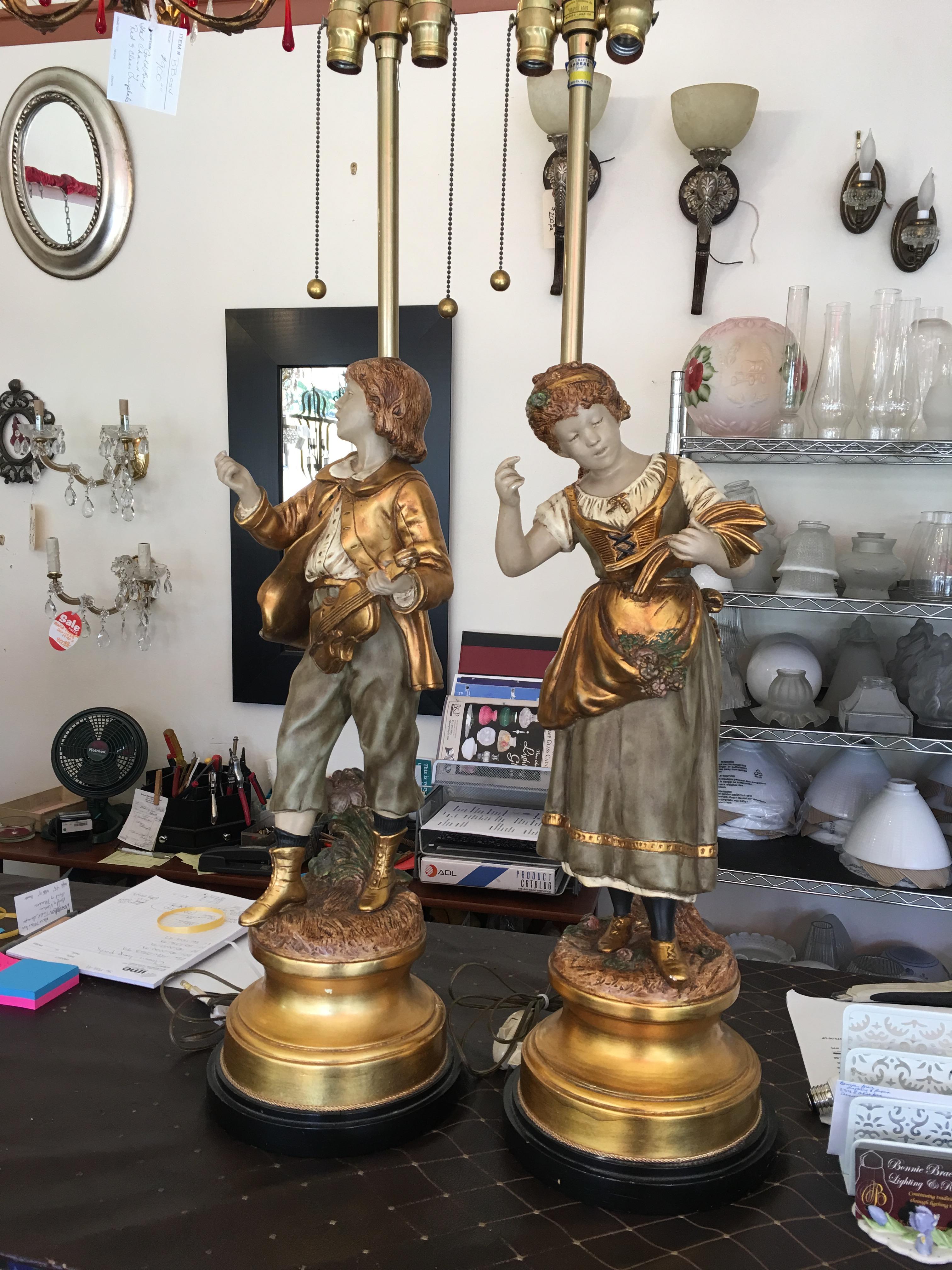 Found this pair of Marbro lamps.  They have a registration number 5887.  Was wondering if the price marked is a fair value.  There is a nick on the base & arm of the boy & the girl has a small spot on her hair.