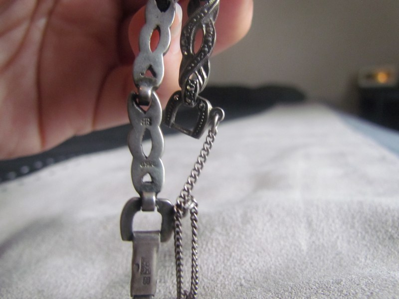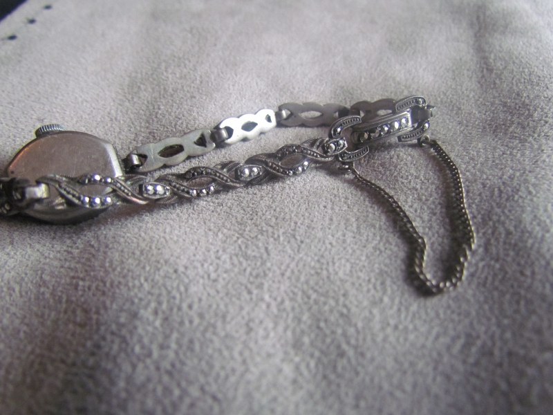 My grandmother gave me this to me. It is awind up marcasite watch, it has the code 925 on it and it also has two B's back to back on it
