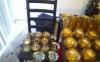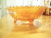 This is a standing marigold carnival glass candy dish. The dish has a swiveled edge and I believe it is a rosalind design which is more valuable/rarer than normal carnival glass.