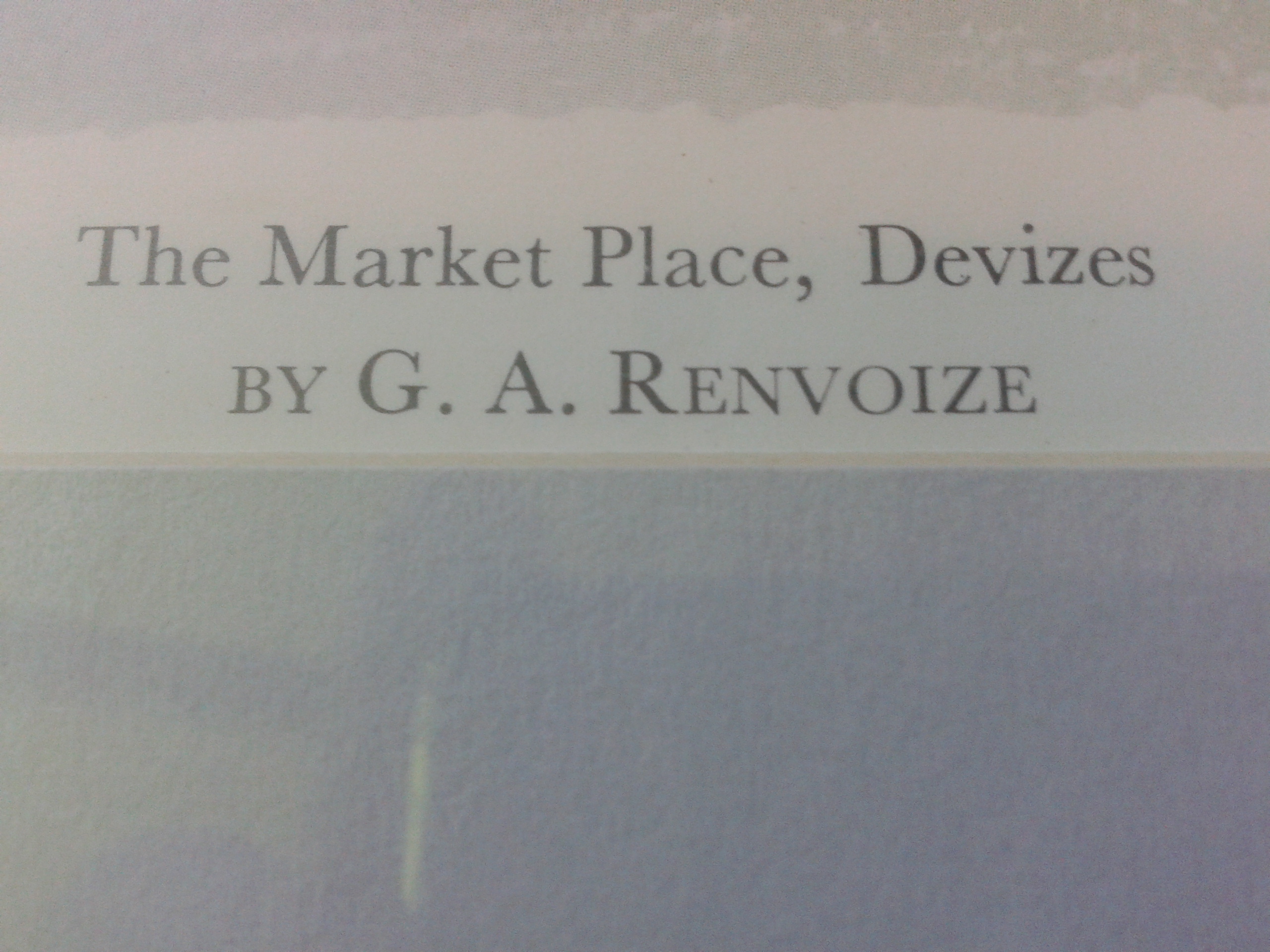 IN FRAME THE MARKET PLACE, DEVIZES BY G.A. RENVOIZE. Don't know much about are but looks to be in good condition. Any feedback would be much appreciated :)!
