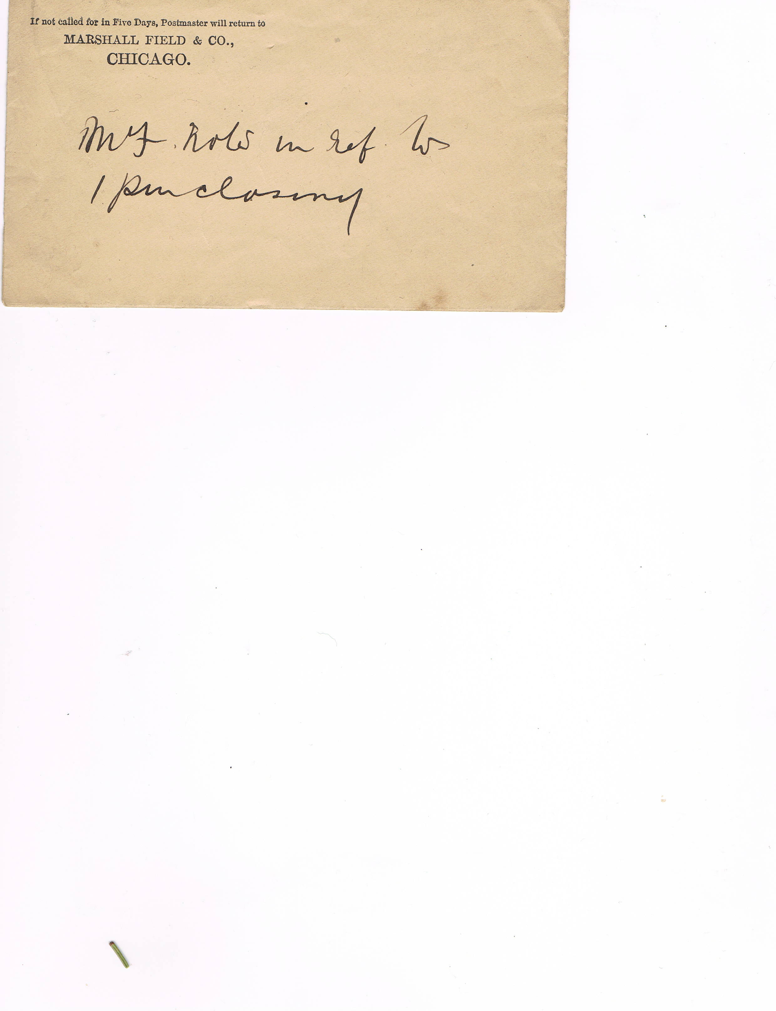I found this letter and envelope from Marshall Field and Company in the trash. It was in a box that had letters,postcards,pictures dated from 1865 to 1945. I want to know if the signature M Field is real.A lot of the pictures and postcards are from the chicago area so I am hoping the signature is real. I collect Marshall Field memorabilia so It would be nice to have a piece of Chicago history.