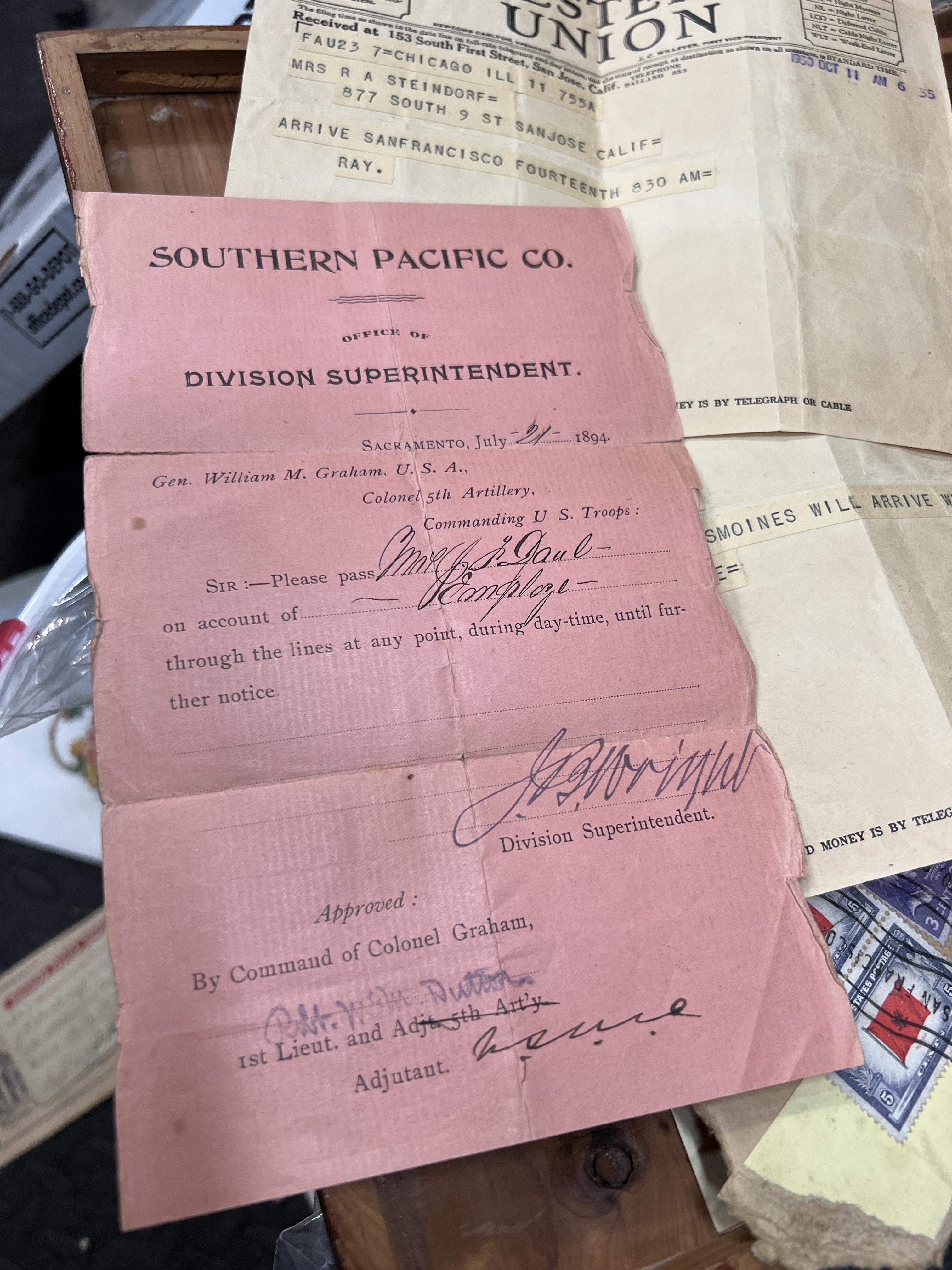 I believe during war with Mexico…pass to travel south of line of martial law for railroad business.