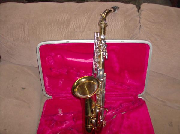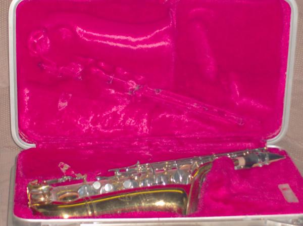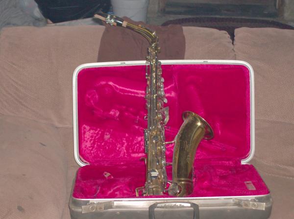It come's in a grey colored like suit case with crushed red velvet interior . The sax was made in Martin Indiana appears to be in mint condition with all available piece's it also has a small shield on the side of it that say's RMC serial number on it is 90248