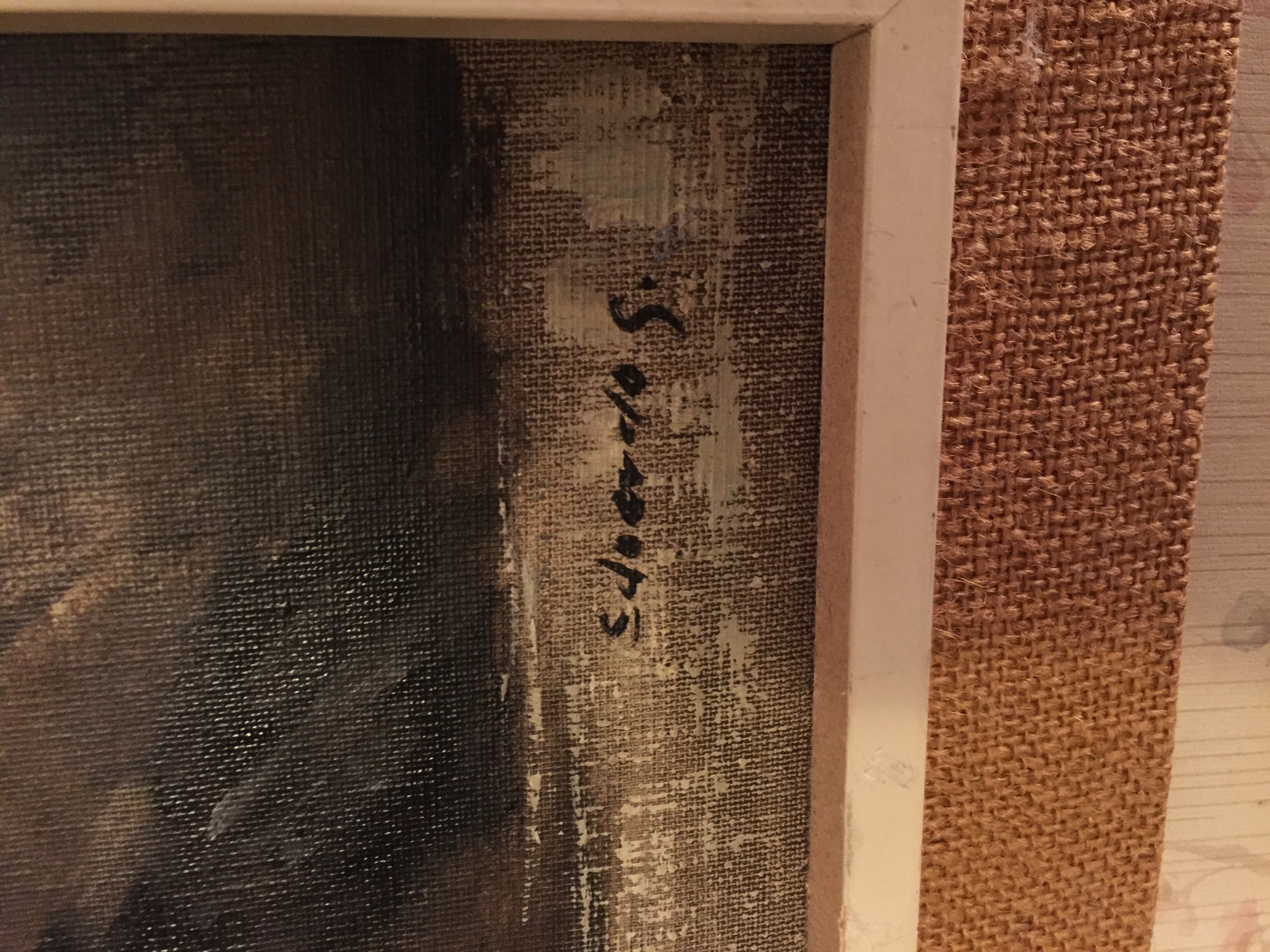 This is an original Paint on Canvas. Roughly 18 x 22. I purchased this a few years ago for $80. & have had no luck finding any art work from the srtist. I believe it is Eduardo S or g..not quite sure. I was told it was bought in Spain in the 70's..if anyone can help, it is appreciated.