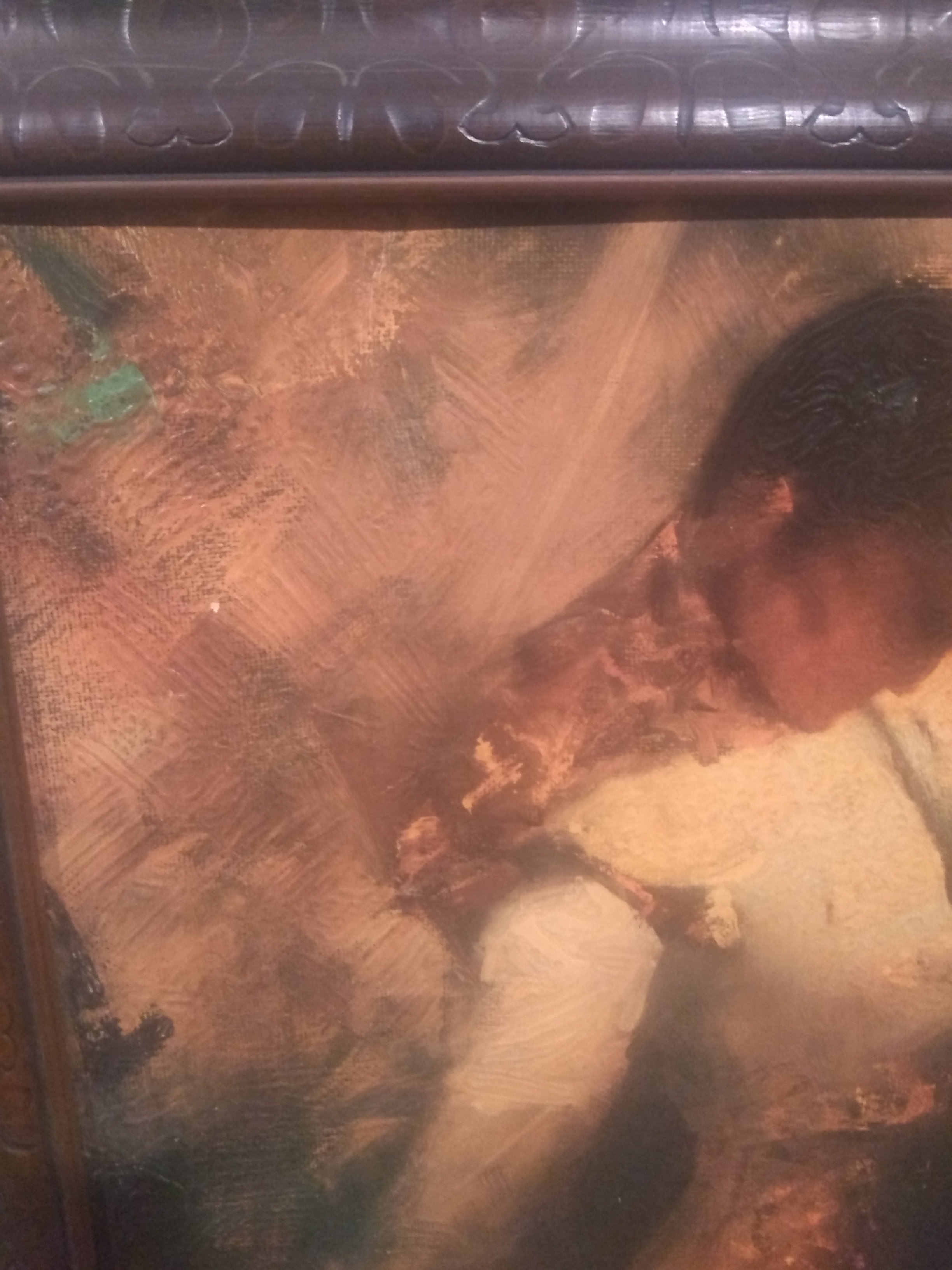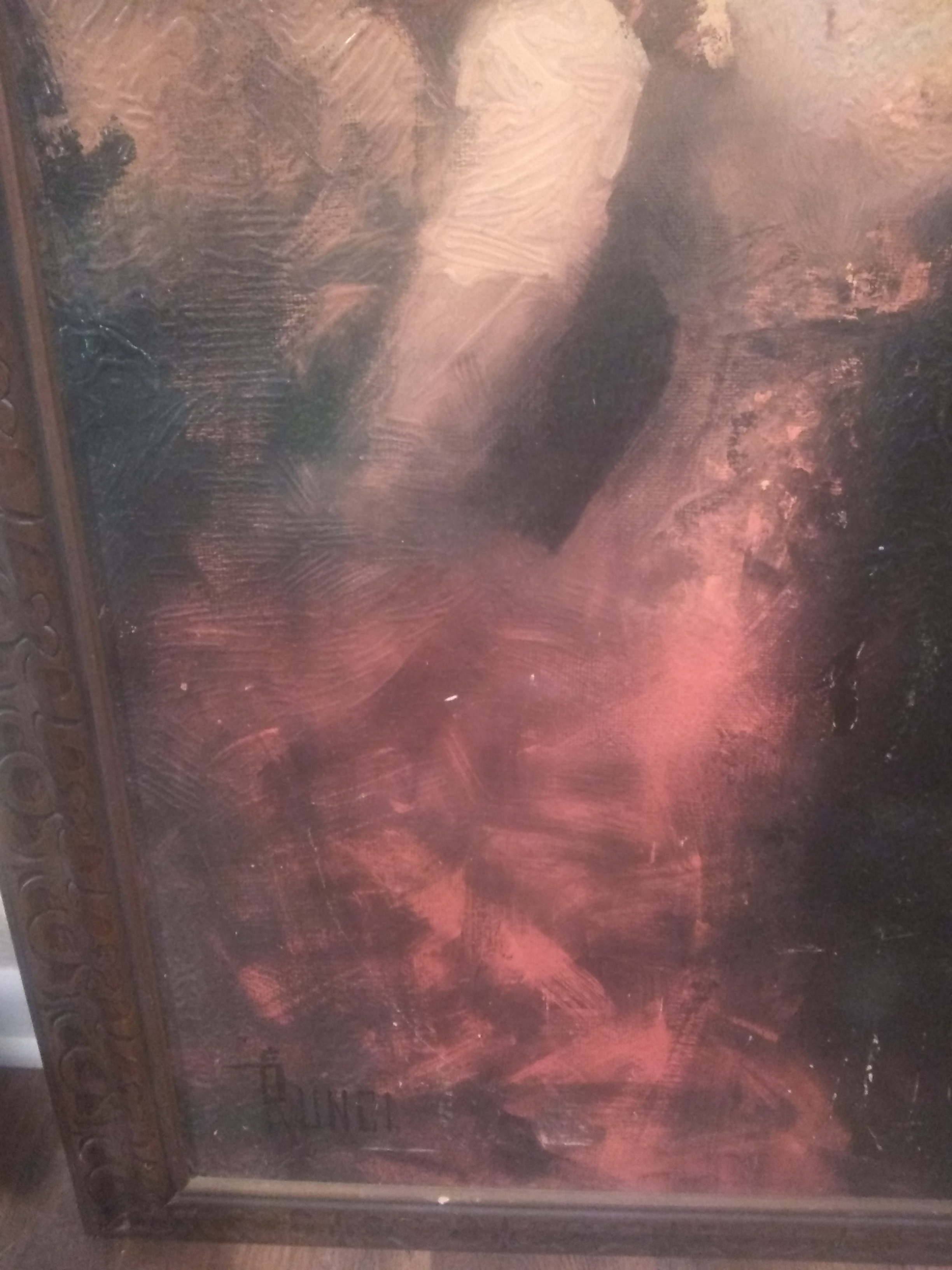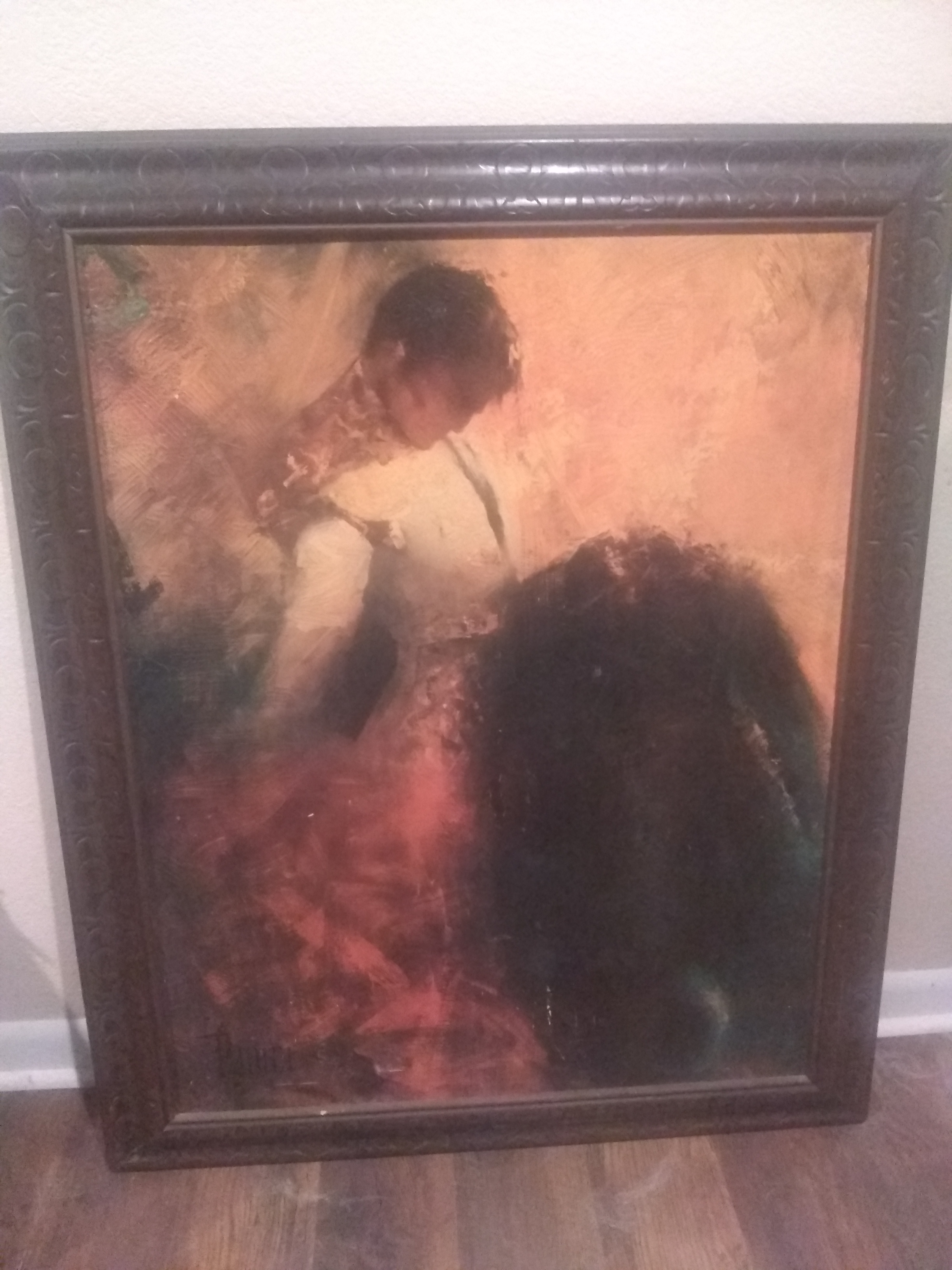 Large painting of a Matador and a bull. Can see paint grooves and strokes. Signature of Runci in bottom left corner.