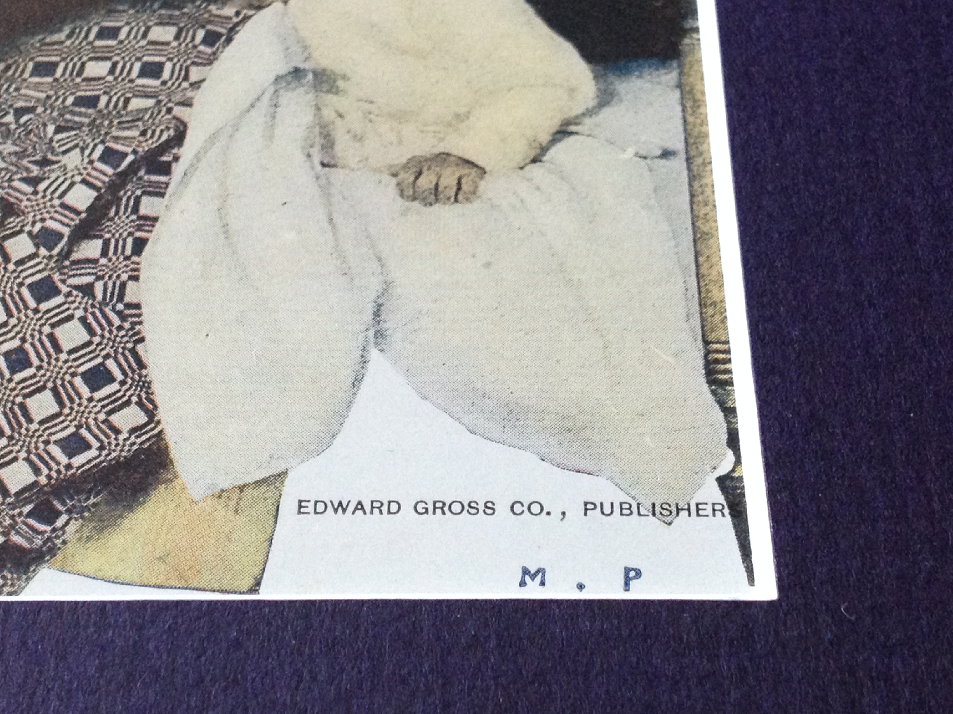 I am told that this print was taken from the first printing of the book "The Arabian Knights" published 1909. It was found at an estate sale in New Hampshire near the location where the artist lived for many years. There are small initials M.P. in the right corner in blue ink. It says Edward Gross Co. publisher and Charles Scribner and Sons. I am wondering if it may have a title and which part of the story it illustrates and if the initials have any significance to its origin.