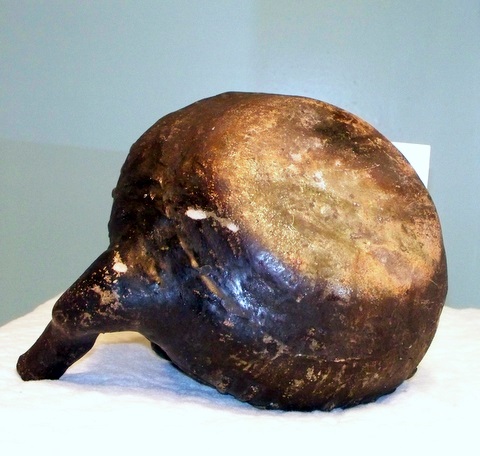 The small pottery piece I believe is the foot of a container it has a vent hole on the back.The pouring