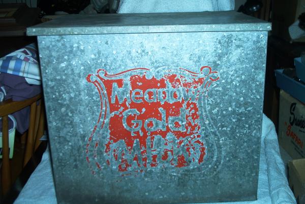 This is a metal box, assumed to be a milk cooler. It has Meadow Gold Milk on the front in red. There are small spots of rust on the exterior and larger spots on the interior. I picked it up at an auction with some other items. I would like any information such as year of manufacture, approximate value, etc. I would like to sell it. Thanks!