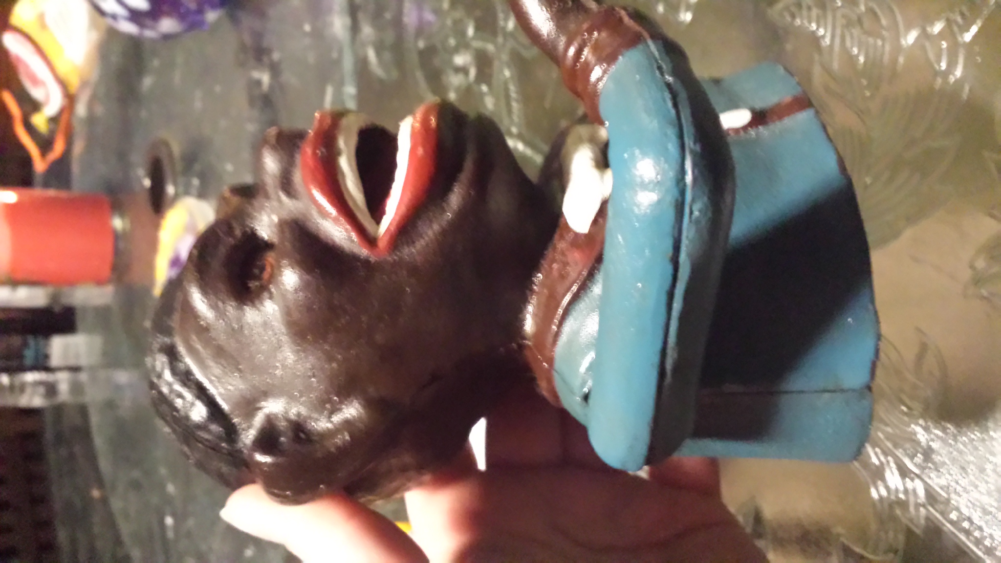 this is an old mechanical bank of a black person with a blue shirt on possibly been repainted at some point over the past years working condition j.e.steven number 45518 96