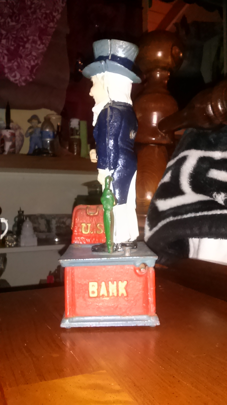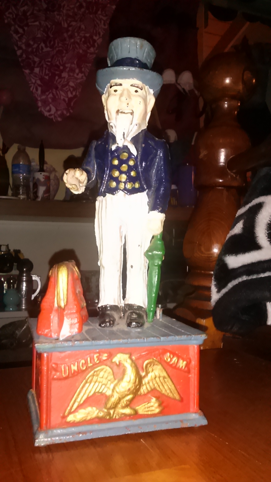 Mechanical Uncle Sam coin in satchel Shepard hardware