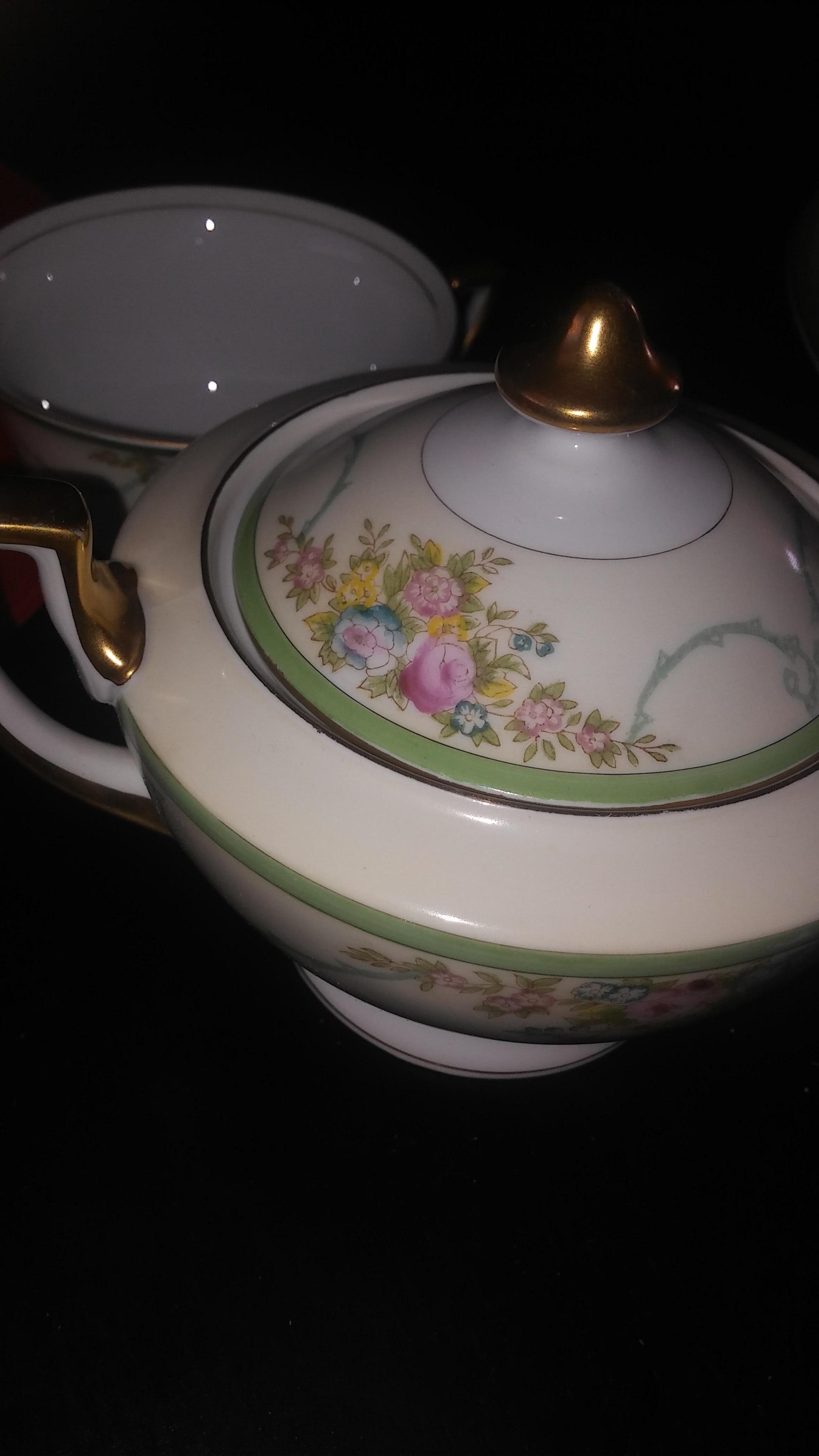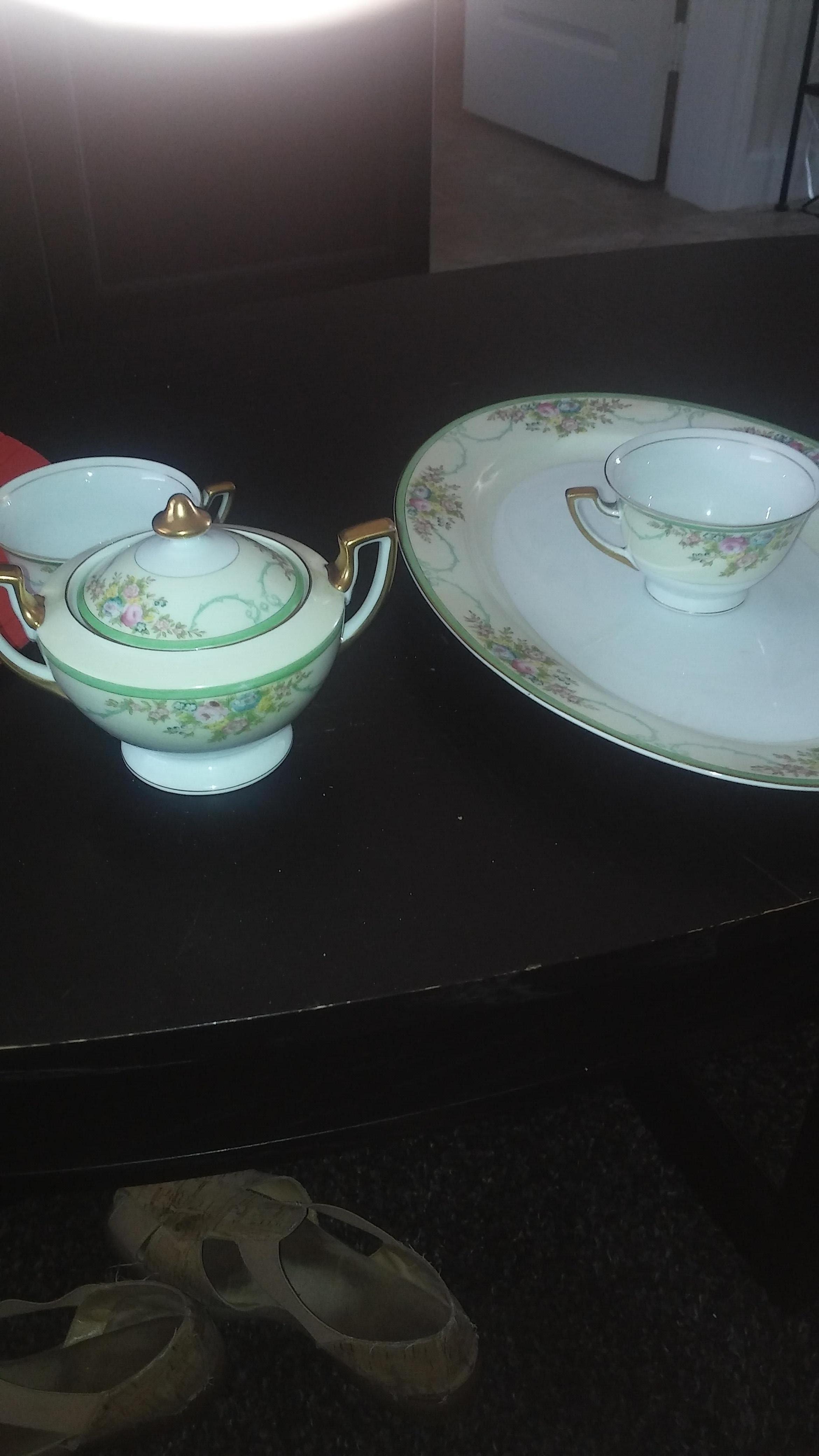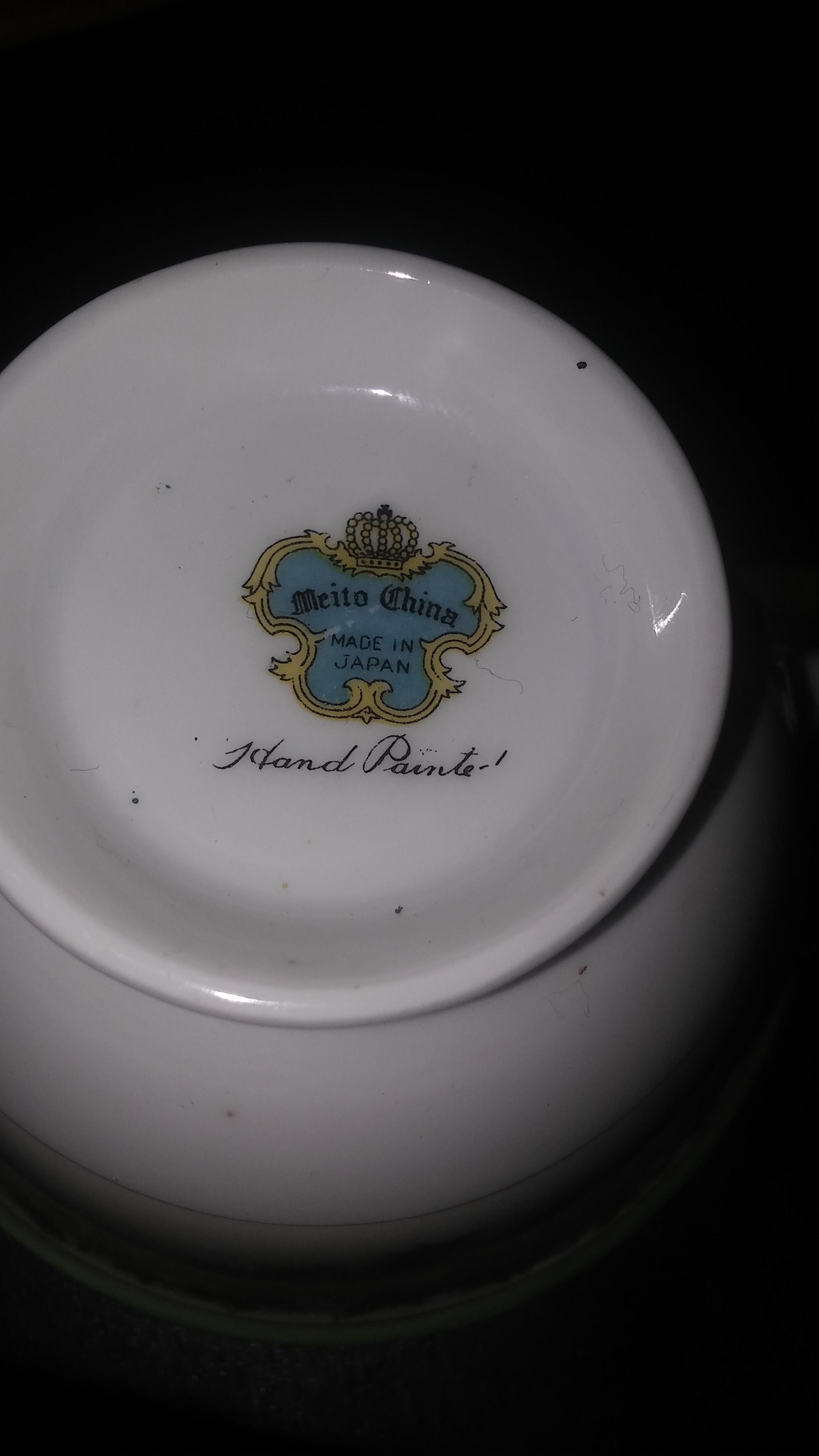 Meito China green border with gold edges. Looking for the name of the pattern and appraisal. Inherited from a great aunt