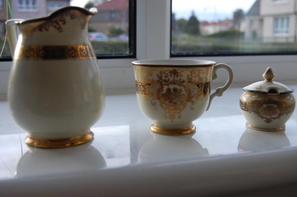 18 pc tea set in excellent condition. Hand Painted Meito China