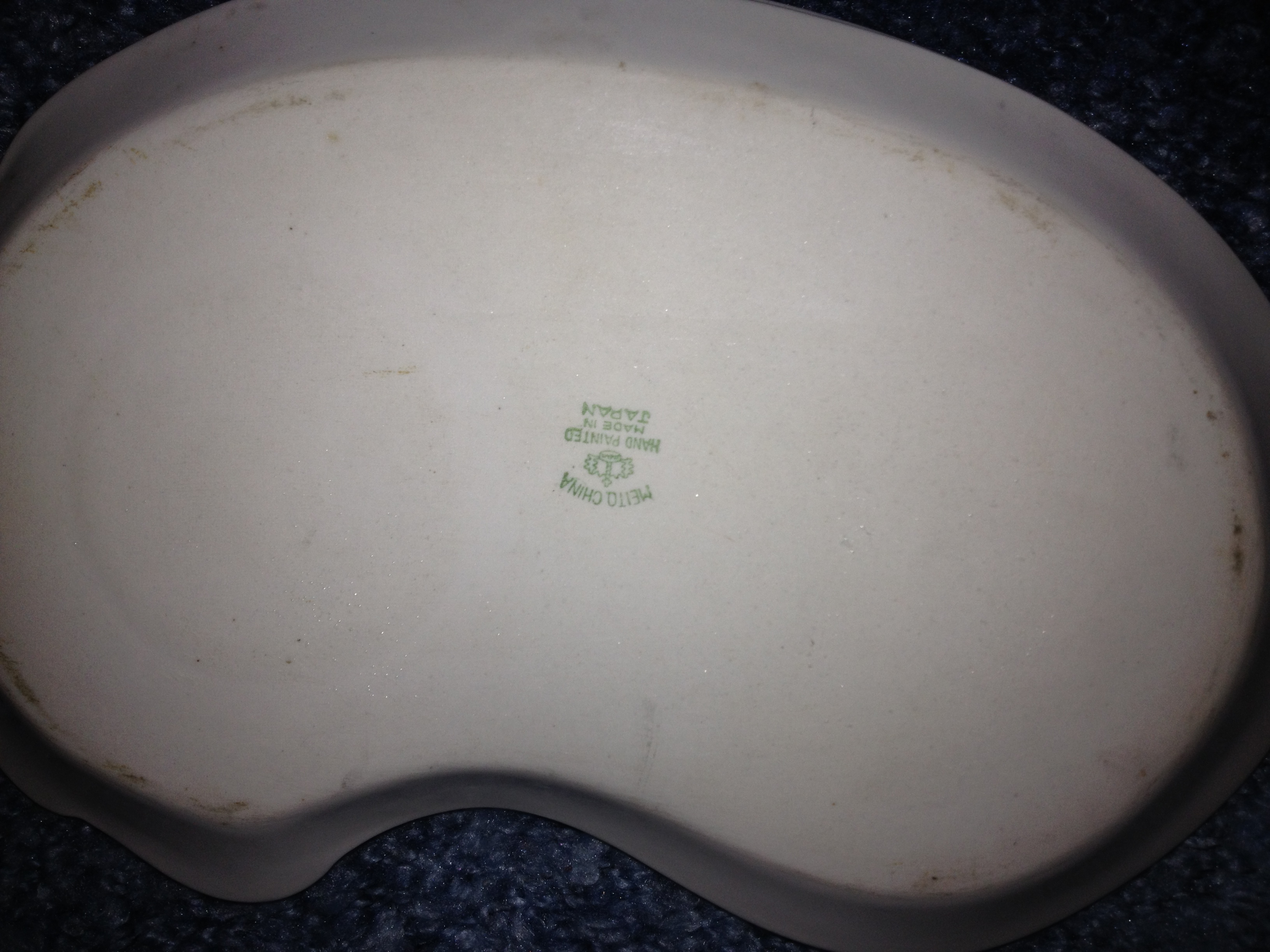 The back is stamped in green and reads Meito China, with a crown below it, Handpainted made in Japan.