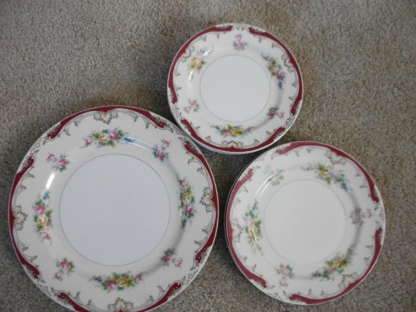 I have 5 6.5" plates, 2 8" plates, and 2 10" plates. There are no chips on them, but there is some wear around the outside edges of all of the plates. The edge of the piece in the picture has about the same wear as all of the other pieces.