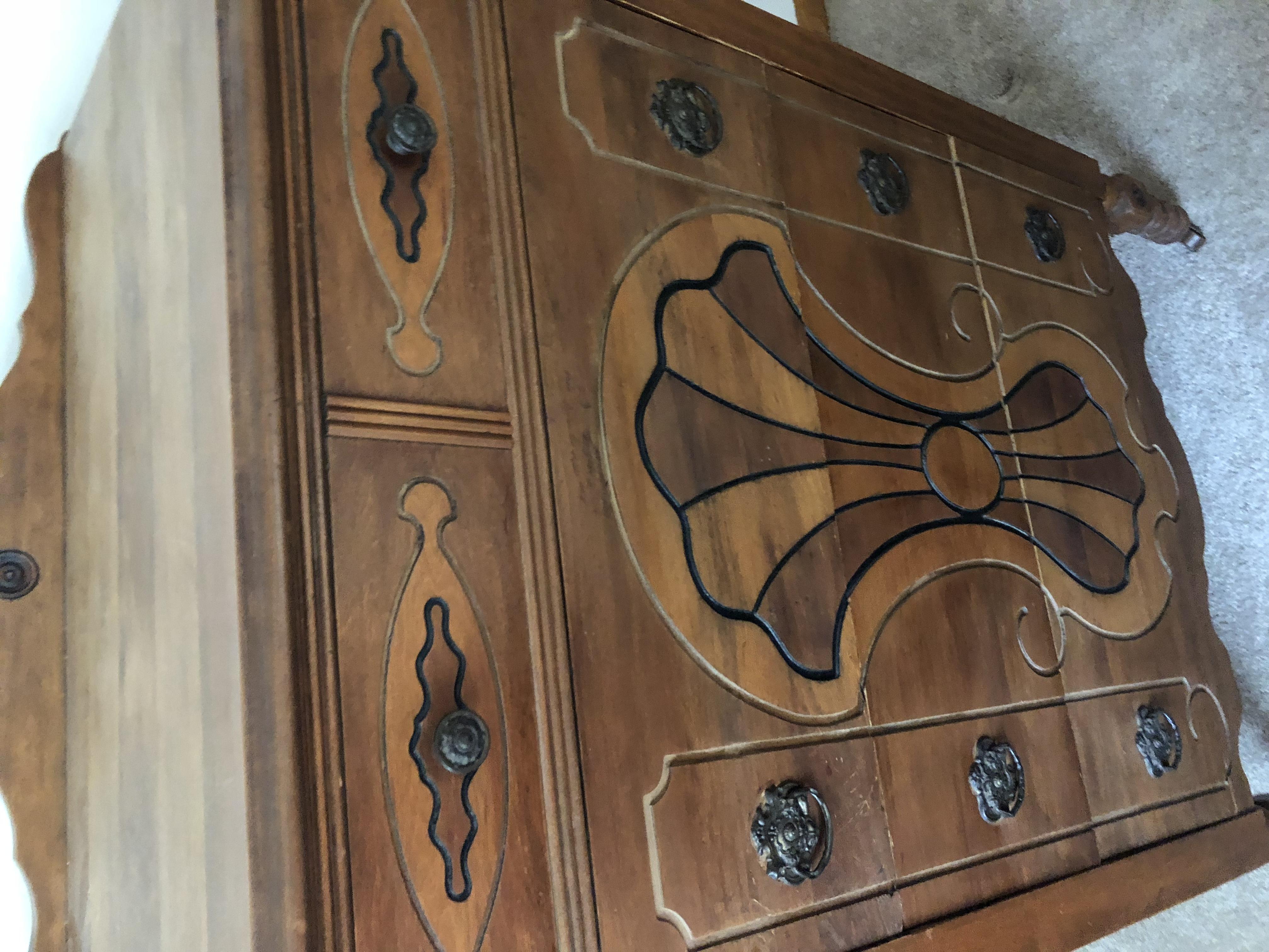 I have a bedroom set from the Memphis Furniture company. It was bought in the late 1930’s. Each piece has the pyramid stamp and is stamped With a m 98. I do have pictures and it is a bed, vanity and dresser