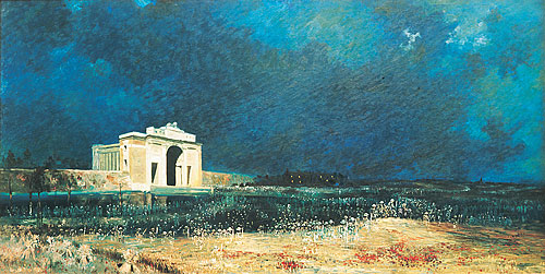 I have a framed print with a brass plate . It is called Menin gate at midnight By William longstaff. It beonged to my Gradfather who fought in WW1 it was always in their house. It is said that only two thousand were printed with william longstaff overseeing the print work. The brass plate says it was presented to the Australian Government by Lord Woolavington (who paid 2000 Guinea )