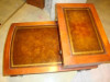 There is a pair of these Mersman step end tables. They are gum or walnut and have been owned by us since 1995.