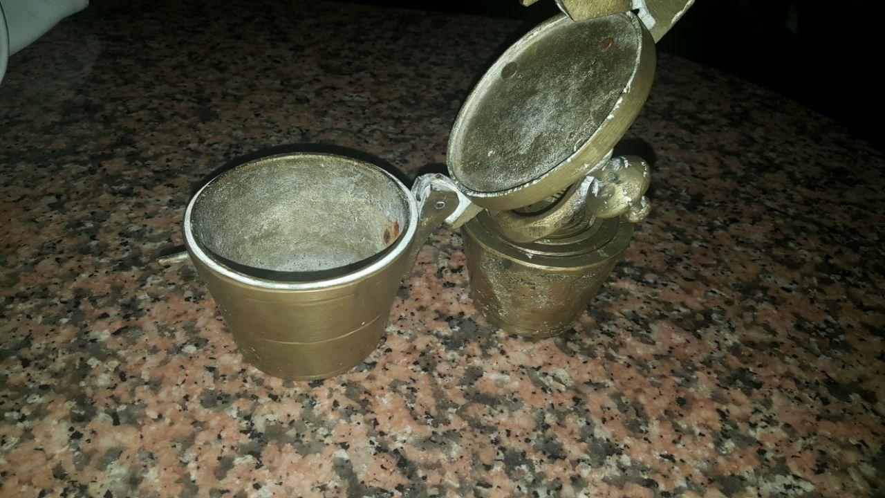 it s metal , i don't exactly know what it is but it's unique it weighs 3.765 kg but it s unusual because you can feel that it's way heavier, and it has some kinf of designs like ancient ones, people gave me huge prices for it but i don't want to do anything before knowing what it is